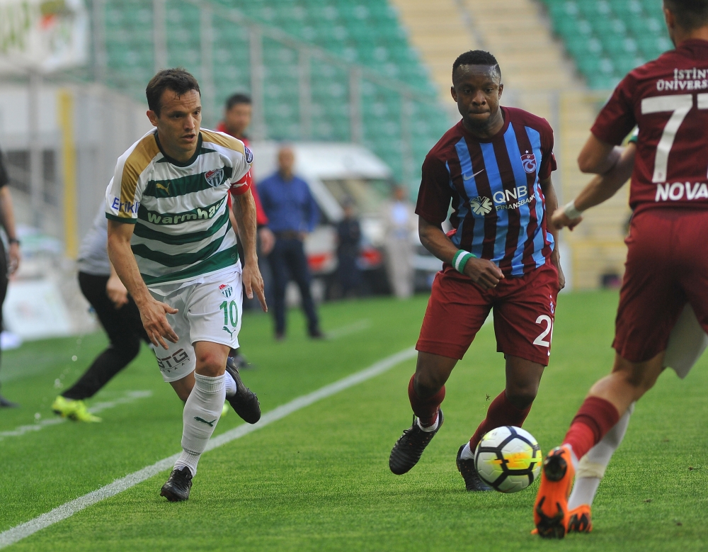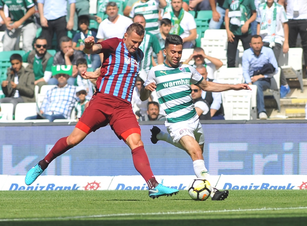 Bursaspor Spor Toto Süper Lig’in 33. haftasında Timsah Arena’da konuk ettiği Trabzonspor’a ilk yarıda yediği gollerle 3-1 mağlup oldu. Bu sonuçla konuk ekip 52 puanla 5. sıradaki yerini korudu. Bursaspor ise 39 puanla 11. sırada kaldı.