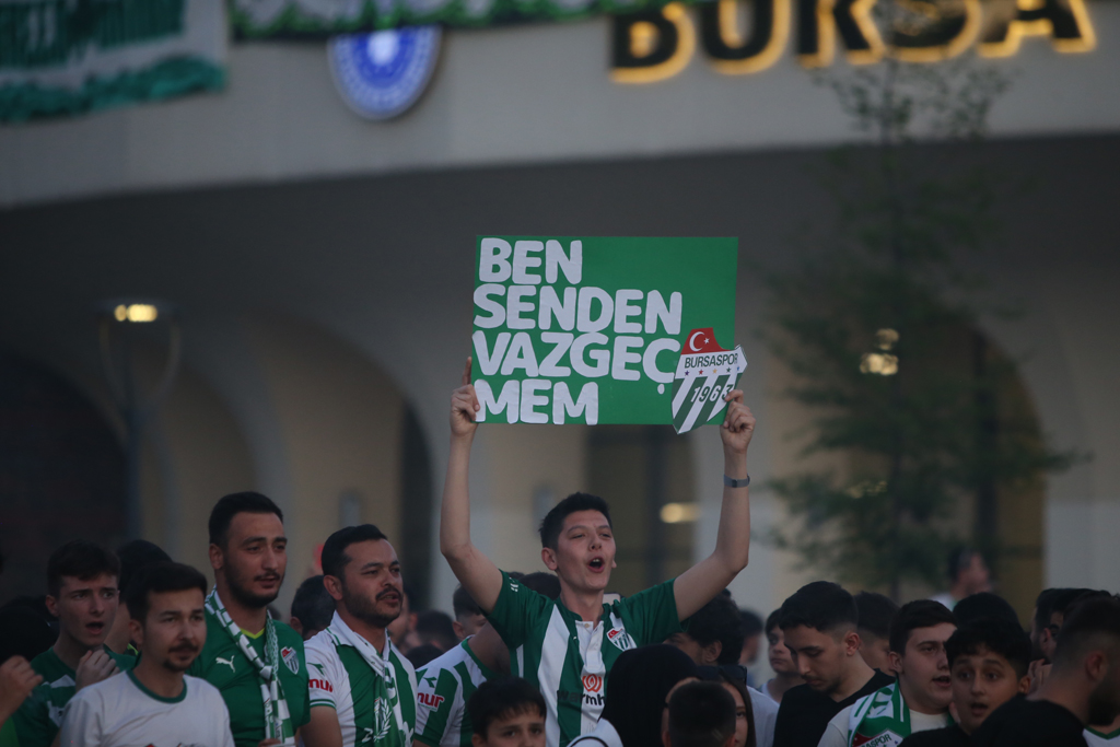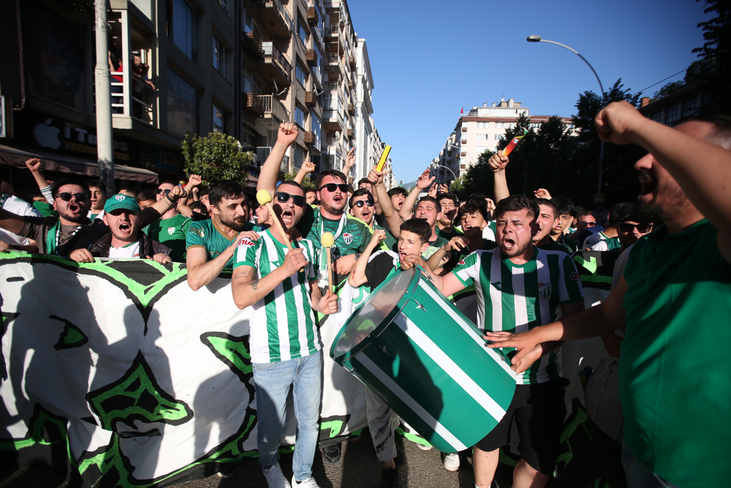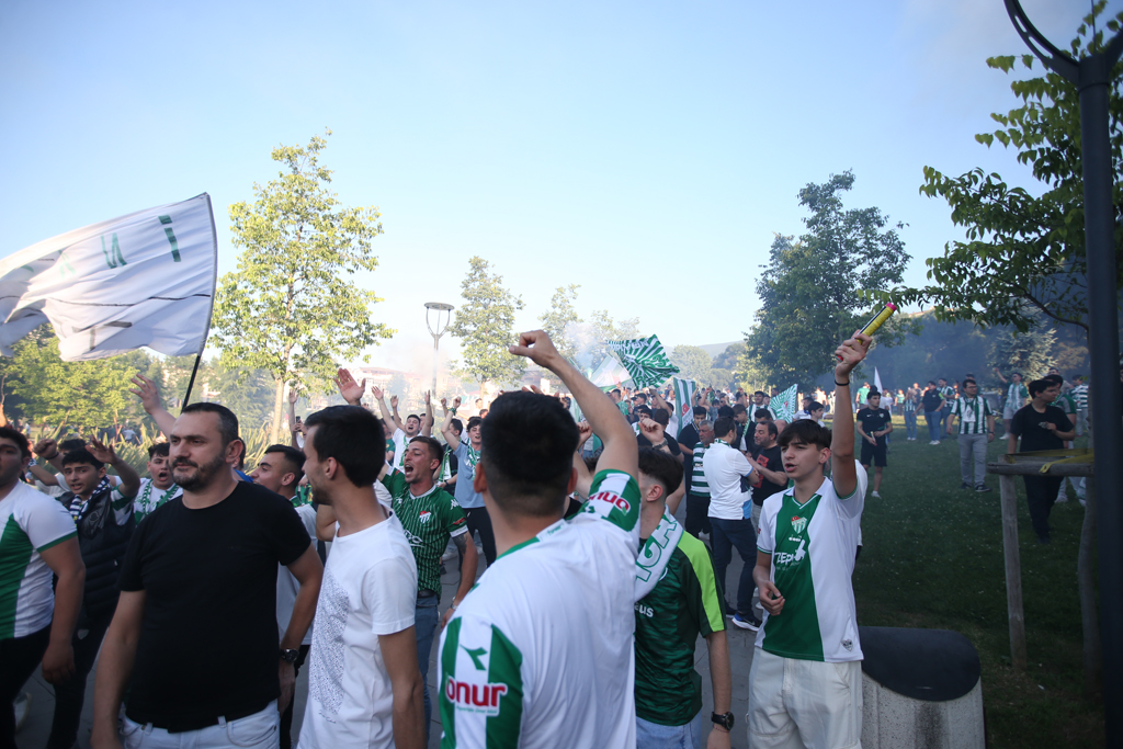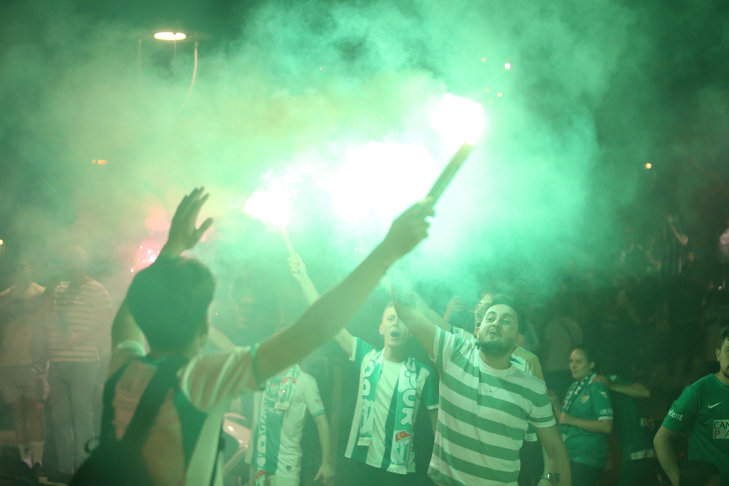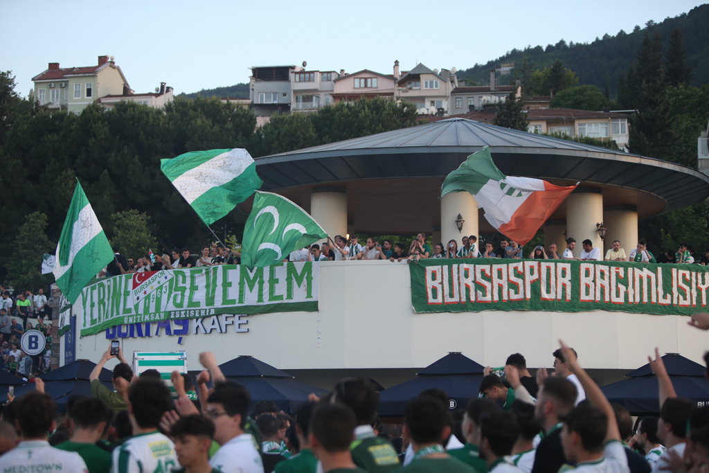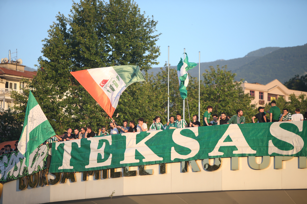 - Havai ve işaret fişekleriyle birlikte ateşlenen meşaleler geceyi adeta gündüze çevirirken, yeşil beyaz sevdalıları her şeyin başladığı yer olan Bursa Atatürk Stadyumu’ndan kurtuluş yürüyüşünü başlatarak tüm Türkiye’ye haykırdı: “Yeniden doğuyoruz, yeniden başlıyoruz!”