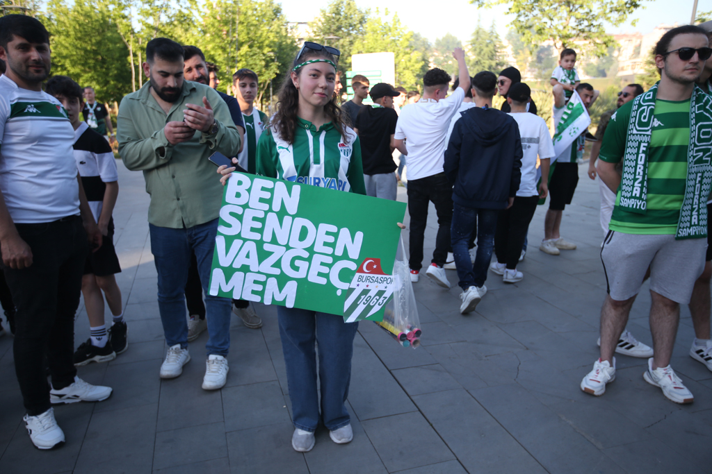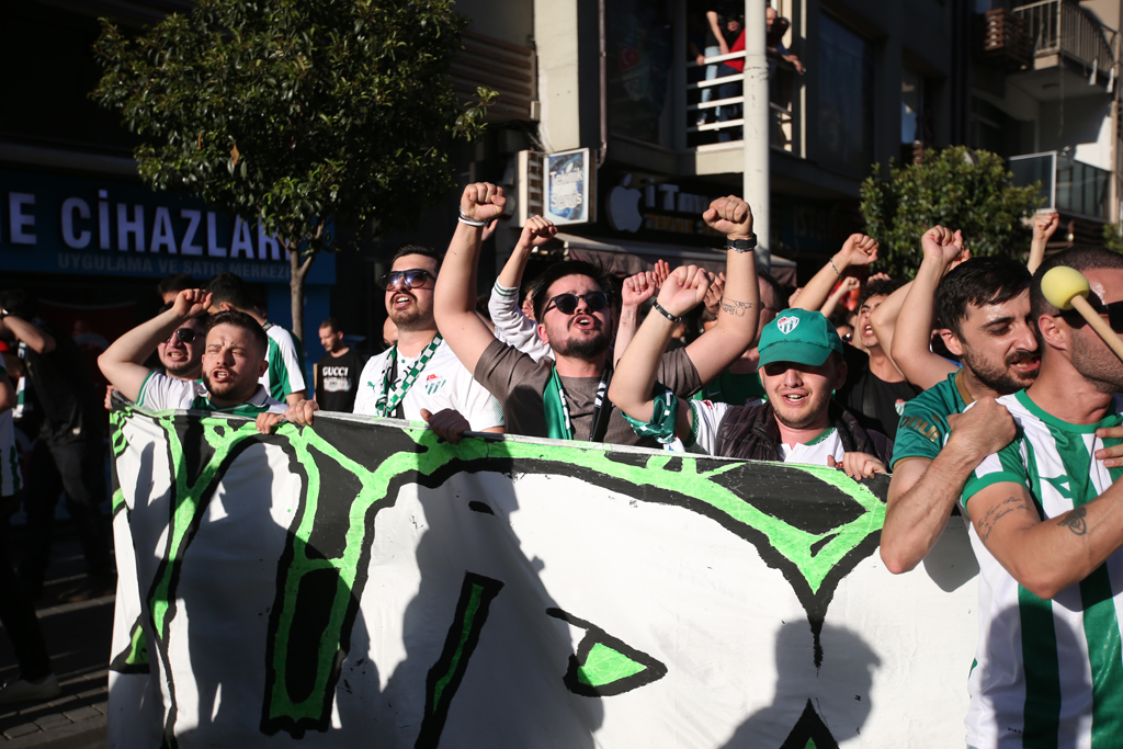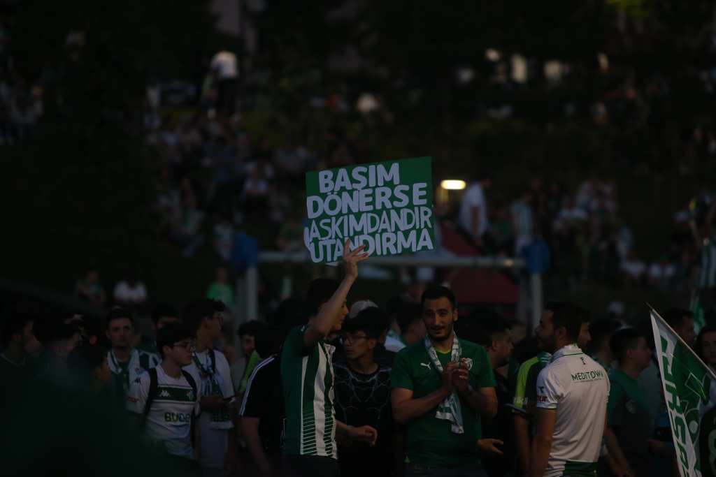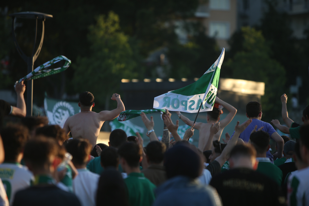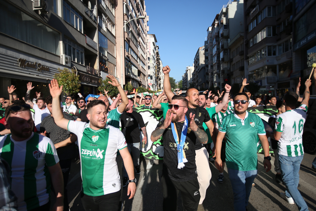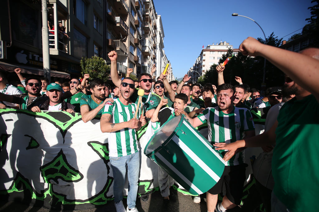 - Havai ve işaret fişekleriyle birlikte ateşlenen meşaleler geceyi adeta gündüze çevirirken, yeşil beyaz sevdalıları her şeyin başladığı yer olan Bursa Atatürk Stadyumu’ndan kurtuluş yürüyüşünü başlatarak tüm Türkiye’ye haykırdı: “Yeniden doğuyoruz, yeniden başlıyoruz!”