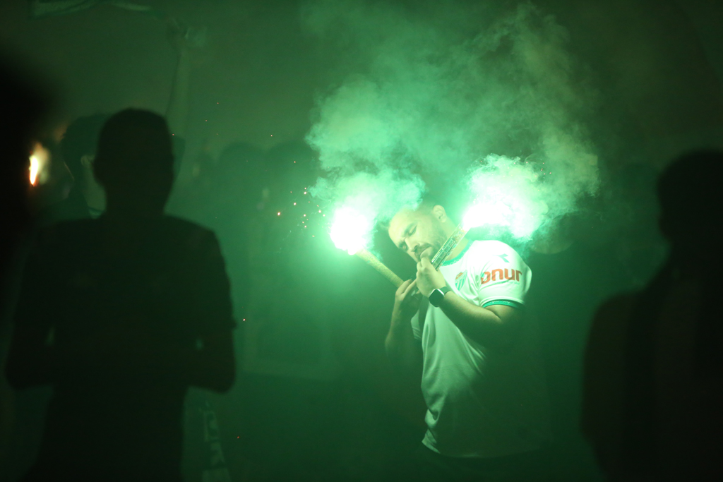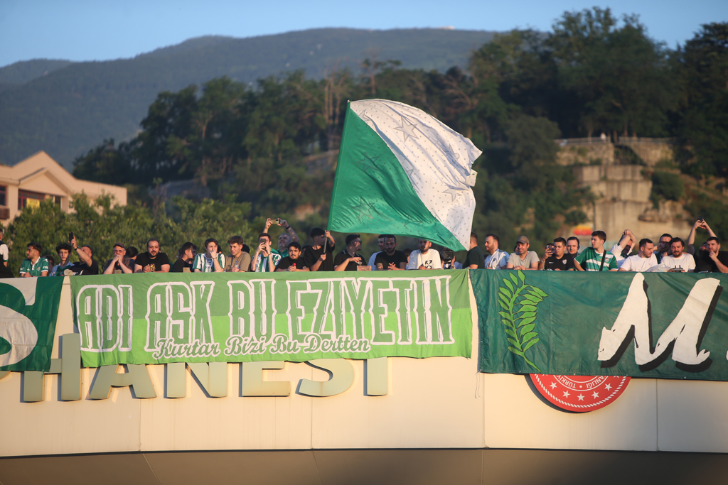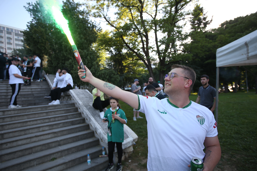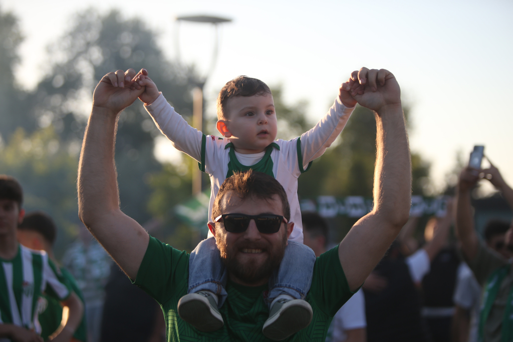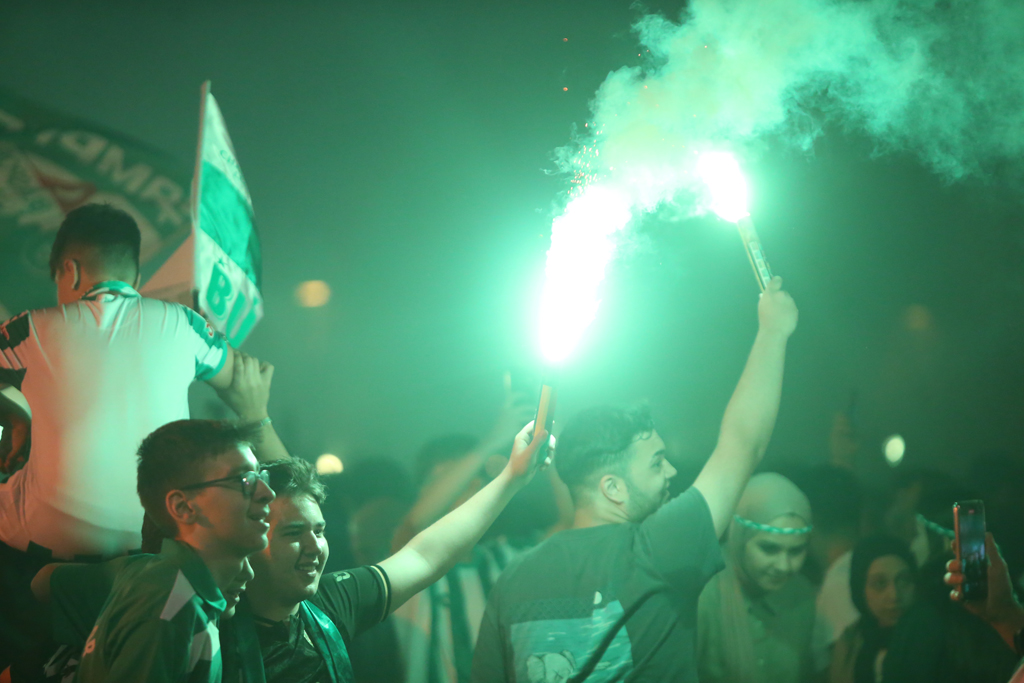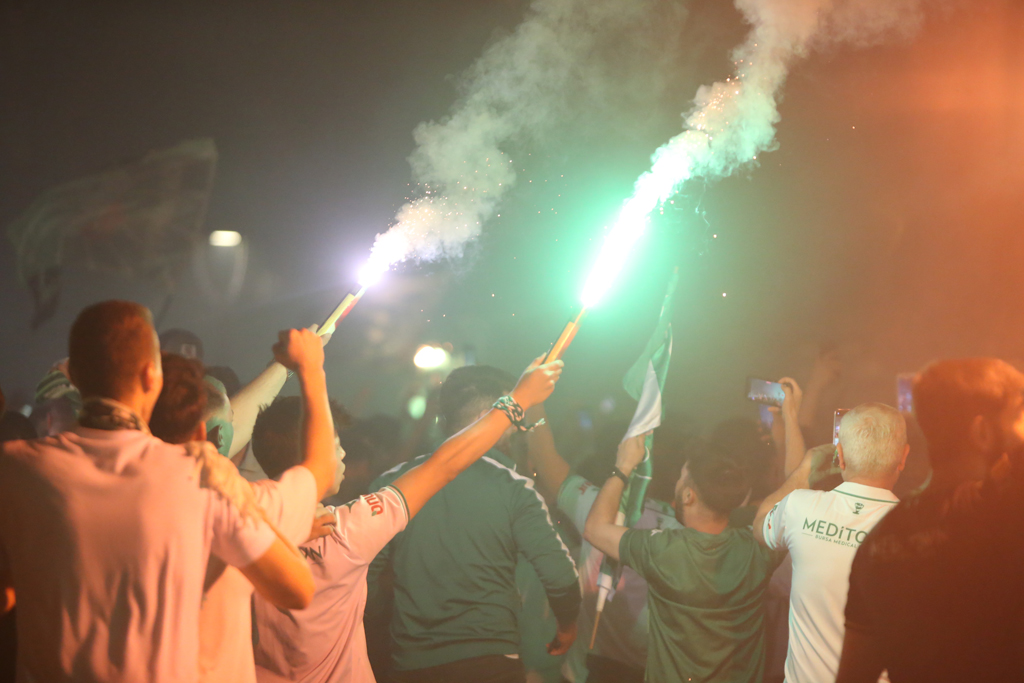 - Havai ve işaret fişekleriyle birlikte ateşlenen meşaleler geceyi adeta gündüze çevirirken, yeşil beyaz sevdalıları her şeyin başladığı yer olan Bursa Atatürk Stadyumu’ndan kurtuluş yürüyüşünü başlatarak tüm Türkiye’ye haykırdı: “Yeniden doğuyoruz, yeniden başlıyoruz!”