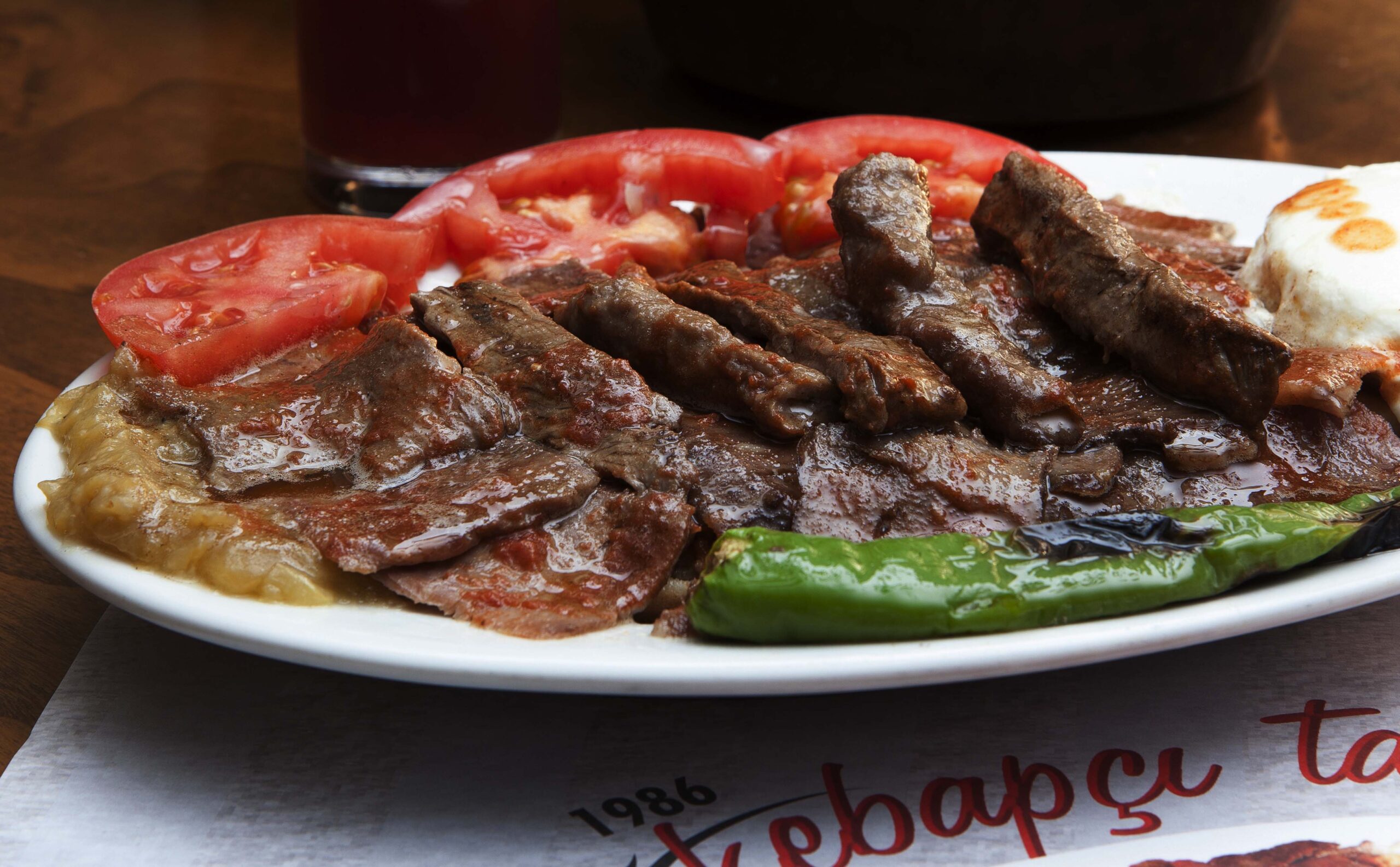- İskender çoğu mekan da tarihi bakır kaplar da üzerinde domates sos, uzun köfte yanında yoğurt veya közlenmiş patlıcan ile üzerine tereyağlı sos ile servis ediliyor.