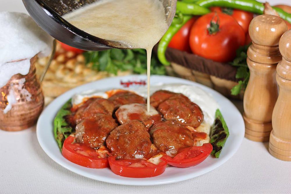 - Pidelerin üzerinde gelen köfte domates sos ve tereyağı ile servis ediliyor.