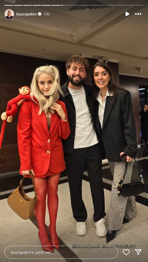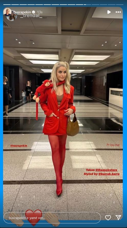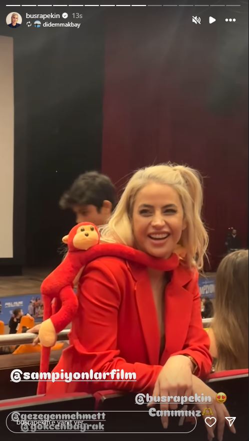 - Kırmızı kombininde yer alan pelüş maymun dikkatlerden kaçmadı.