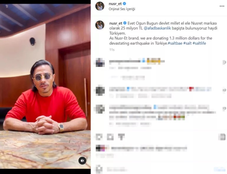 - Afet bölgedesinde yemek dağıtımına devam eden Nusret Gökçe, son olarak sosyal medya hesabından yaptığı bir paylaşım ile AFAD’a 25 milyon TL nakit bağış yaptığını açıkladı.