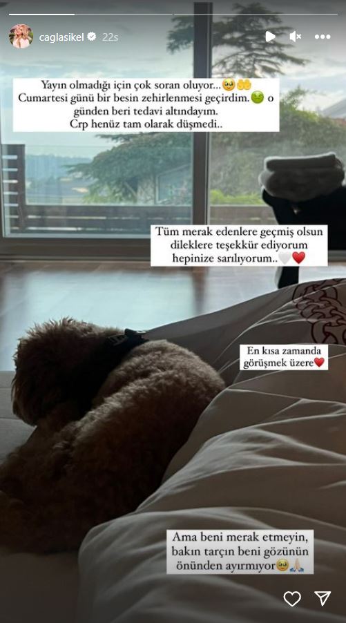 - Şıkel de hastane odasından fotoğraf paylaşarak, besin zehirlenmesi geçirdiğini açıkladı.