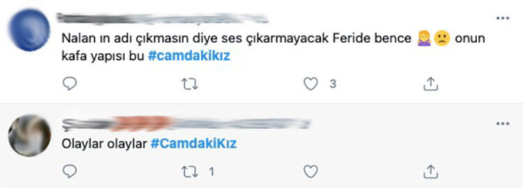 - “Nalan’ın adı çıkmasın diye ses çıkarmayacak Feride bence. Onun kafa yapısı bu”, “Olaylar, olaylar”