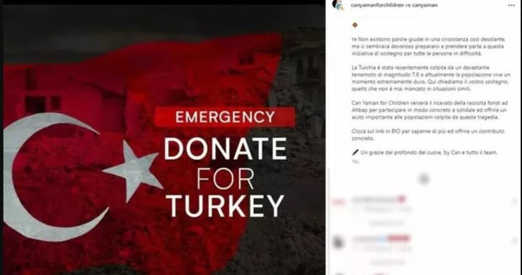 - Yabancı takipçilerini de harekete geçiren ünlü oyuncu Can Yaman, Instagram hesabından paylaşım yaparak bağış çağrısında bulundu. Yaman İtalyanca paylaşımında şunları söyledi:
