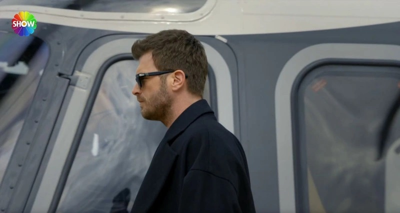 - Sahnenin devamında 4 dakika sonra helikopterden inen Aslan’ın gözlükleri değişmişti.