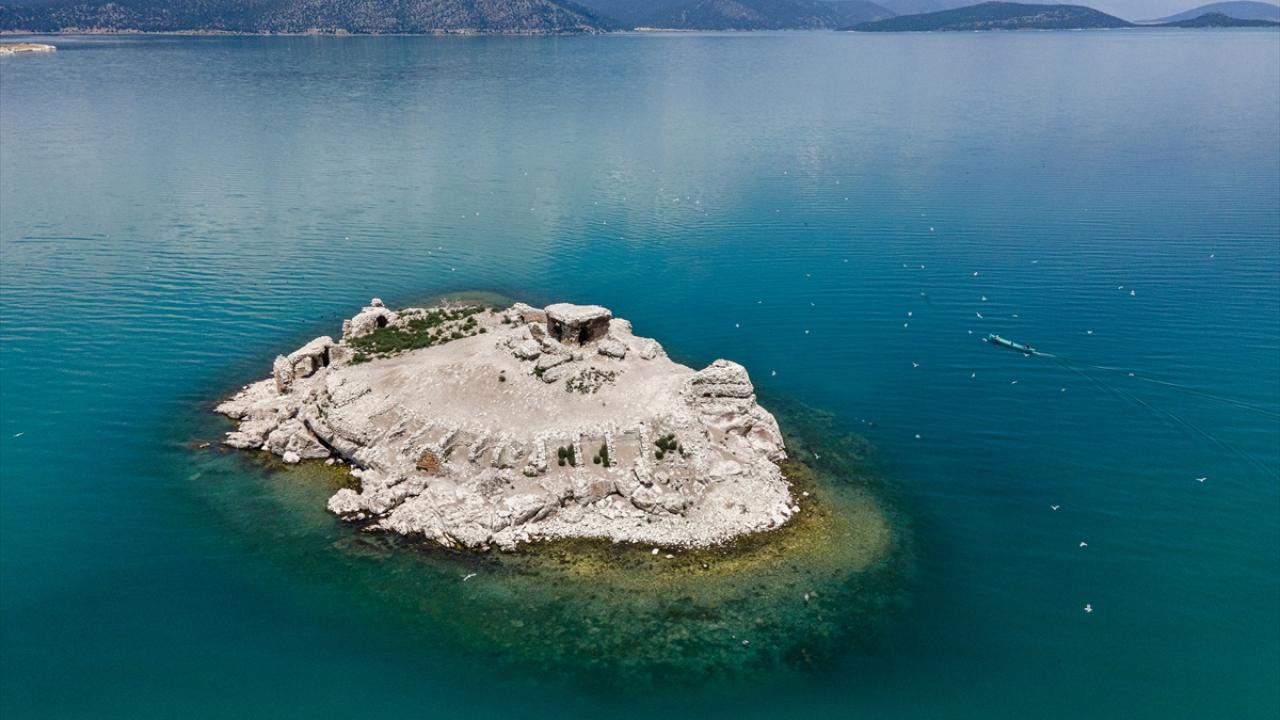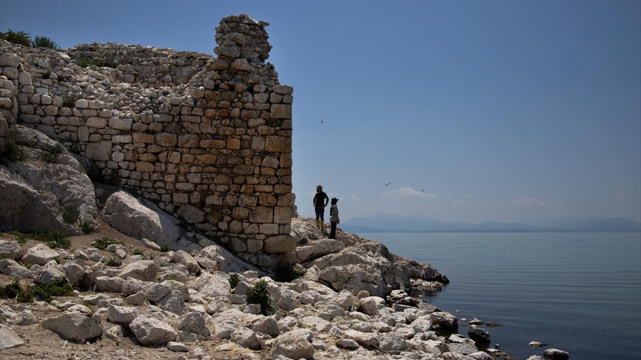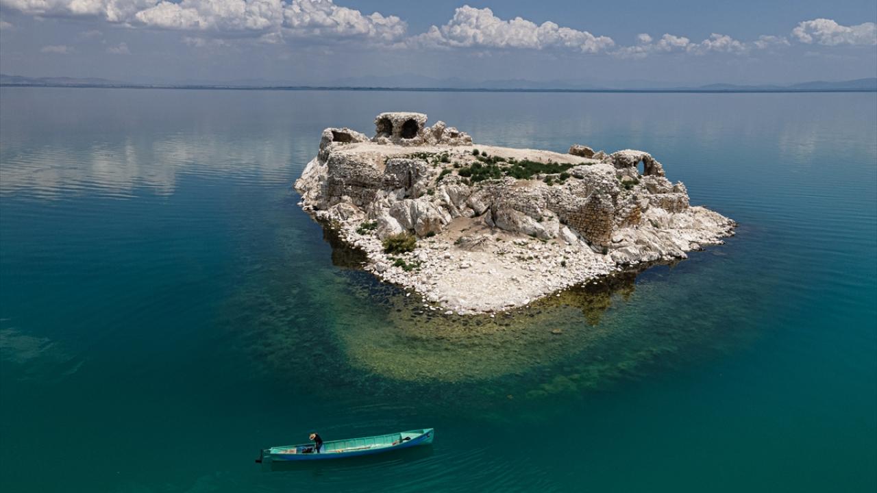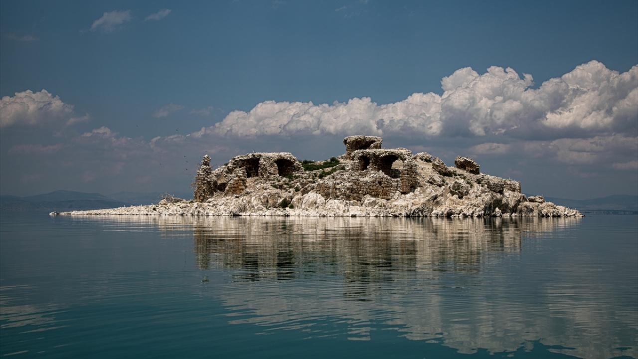 - Gölün batı sahillerine yakın kısımda yer ada, bölgede yaşayan bir çok kuş türüne de ev sahipliği yaparken, bünyesinde barındırdığı kale, ziyaretçilerini bekliyor.(AA)