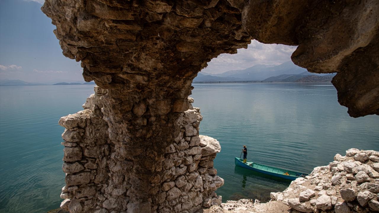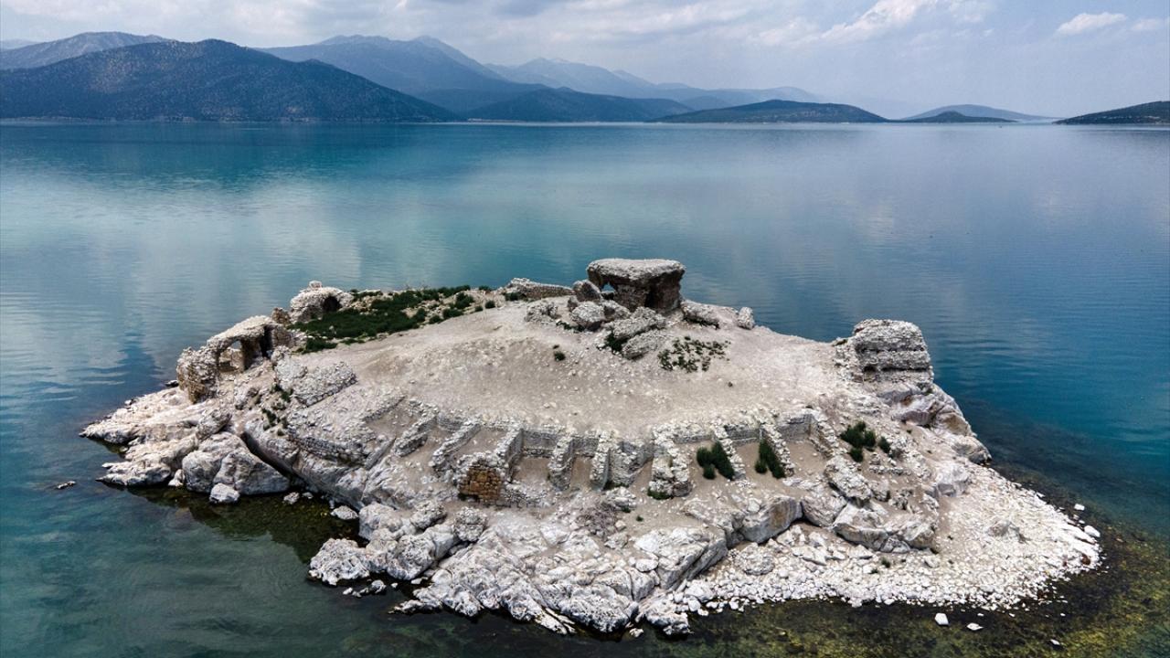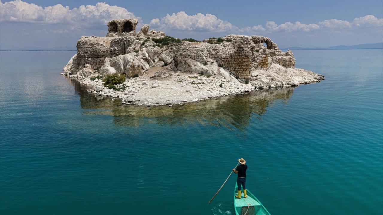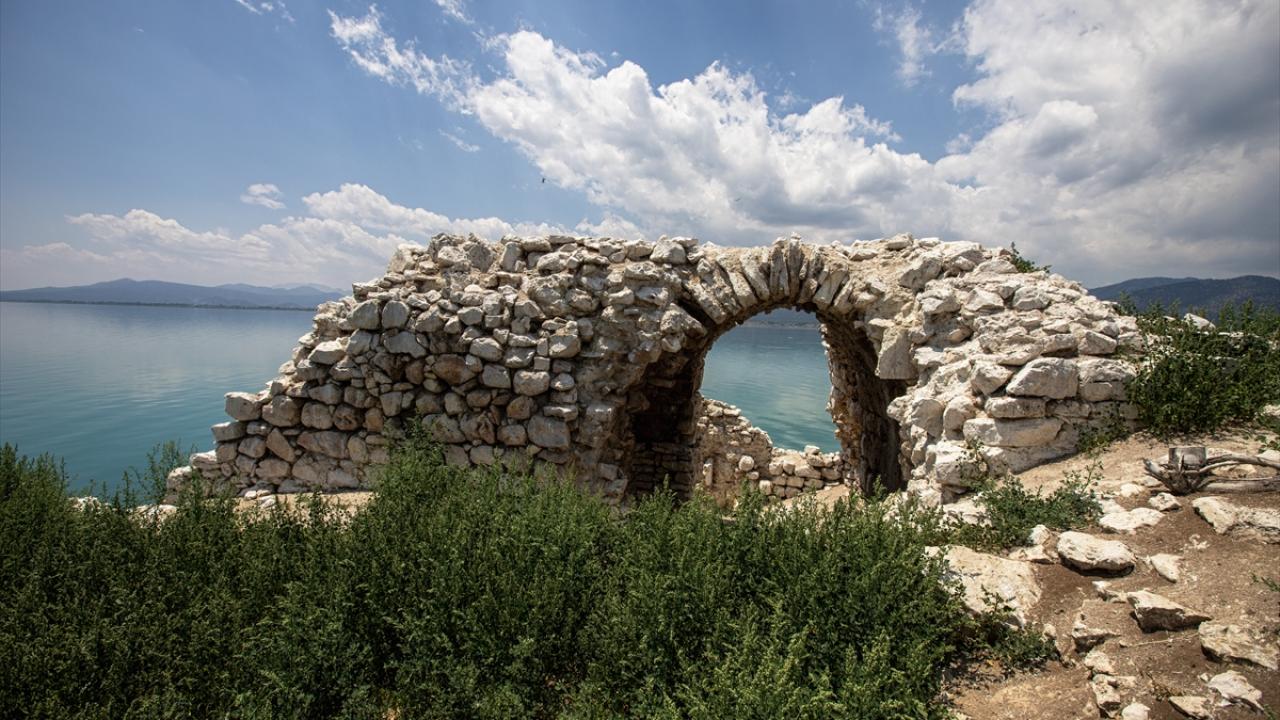 - Gölün batı sahillerine yakın kısımda yer ada, bölgede yaşayan bir çok kuş türüne de ev sahipliği yaparken, bünyesinde barındırdığı kale, ziyaretçilerini bekliyor.(AA)