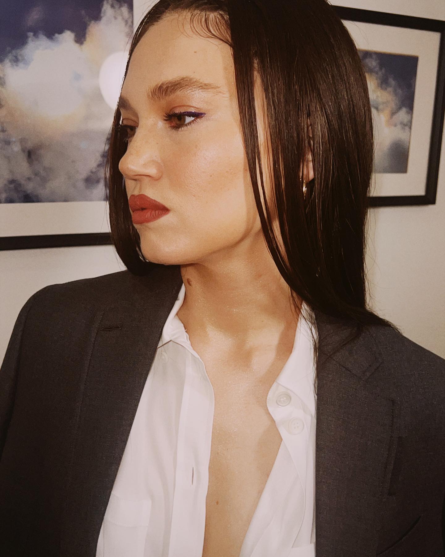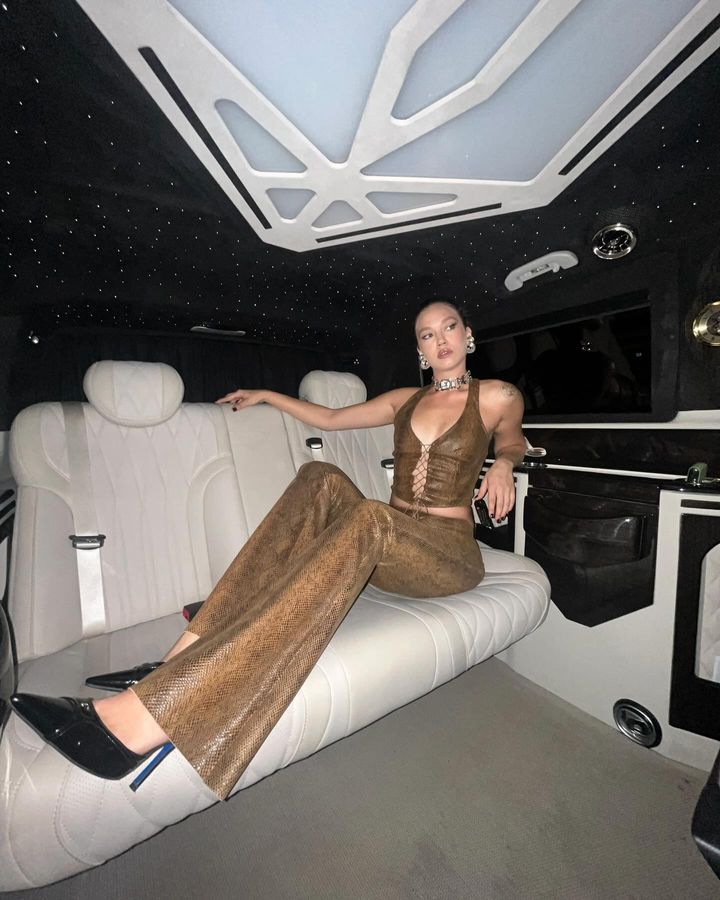 - Filmin galasına cesur kıyafetiyle damgasını vurdu.