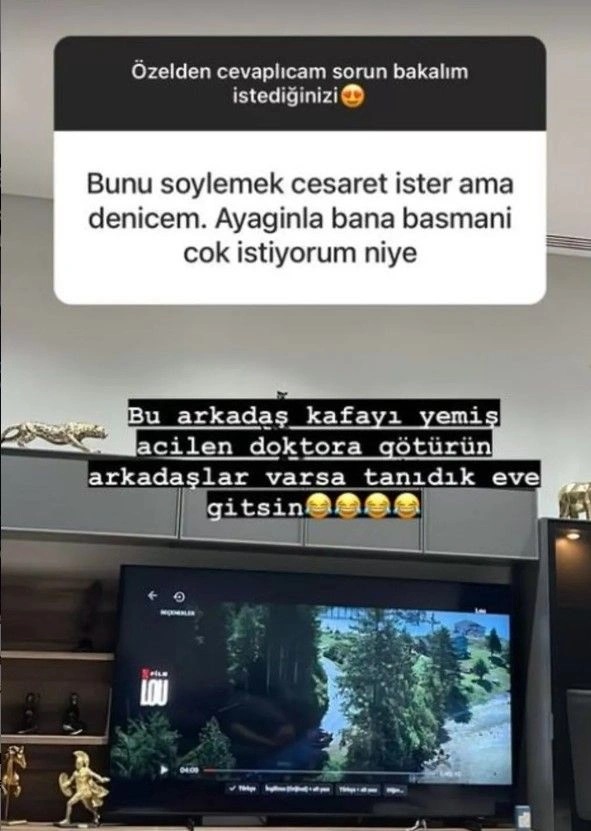- Gökhan Çıra’ya takipçisi “Bunu söylemek cesaret ister ama deneyeceğim. Ayağınla bana basmanı çok istiyorum” dedi.