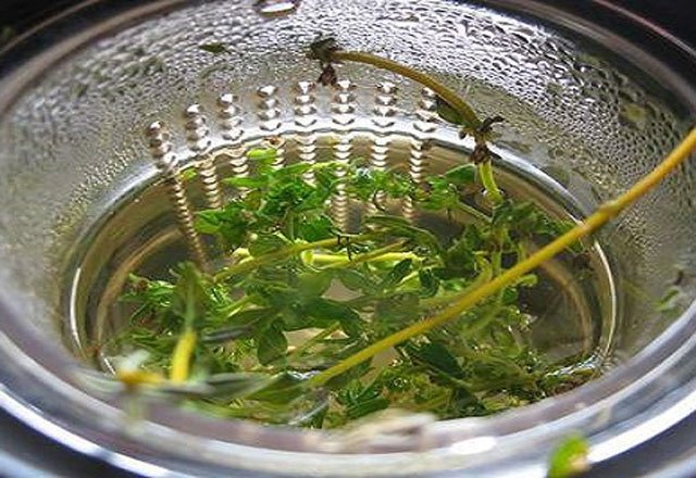 - Kekik, alıç, ıhlamur, melisa ve portakal kabuğu ise yukarıda belirlenen miktarlarda karışım şeklinde demleme usulü olarak hazırlanır. Bu karışım eğer taze kullanılacaksa iri kıyılmış, kuru ise kaba toz edilmiş olarak hazırlanır. Karışımdan 1 silme yemek kaşığı alınır, kulplu bir cam bardağa konulur, üzerine 150 ml sıcak su dökülür. 10 dakika ağzı kapalı bir şekilde demlendirilir. Daha önce süzülüp ılıtılmış olan ve içerisinde Laden bulunan karışım ile birebir oranında karıştırılır ve ılık olarak yudum yudum içilir. Günde 2 kere tekrarlanır.