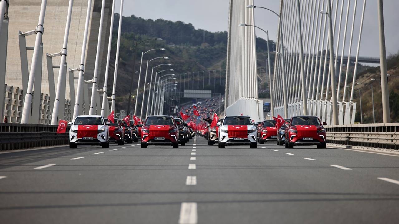 Türkiye’nin yerli otomobili Togg’lar, Yavuz Sultan Selim Köprüsü’nden geçti…