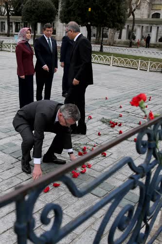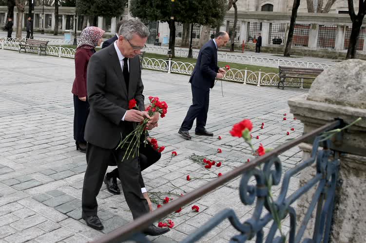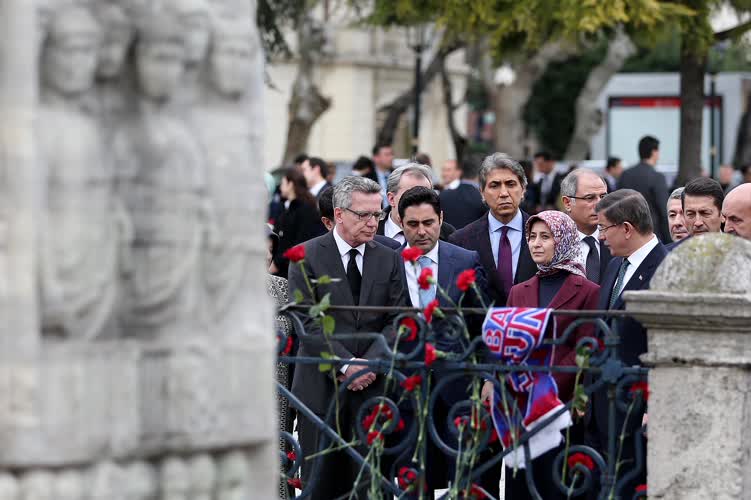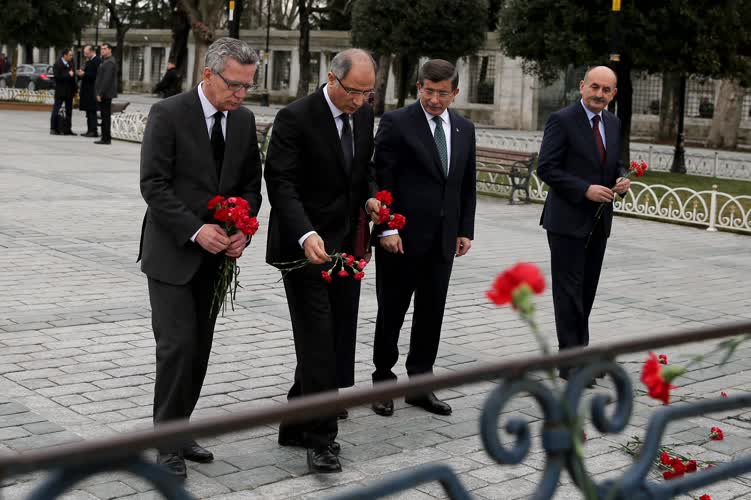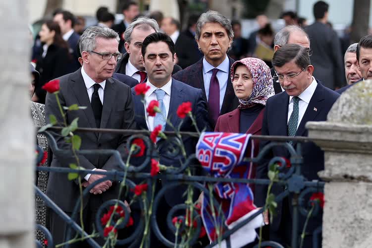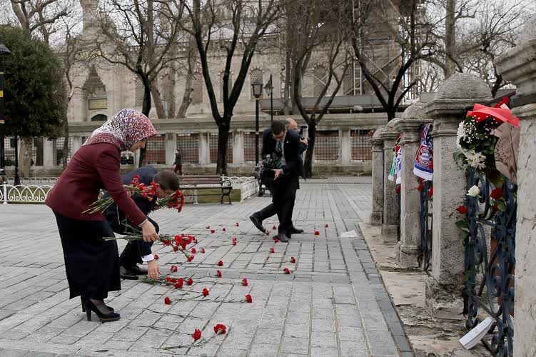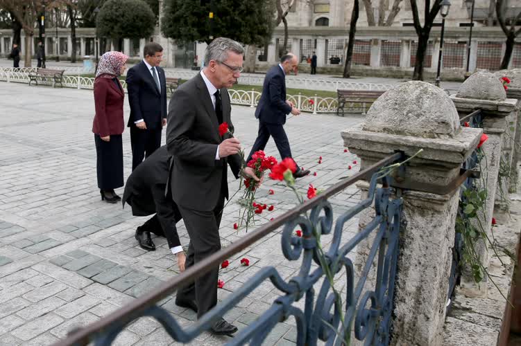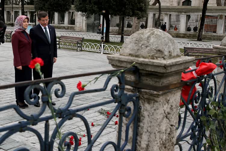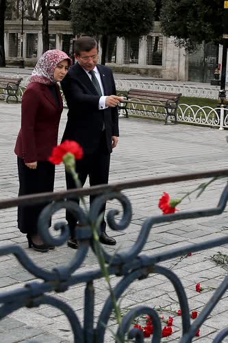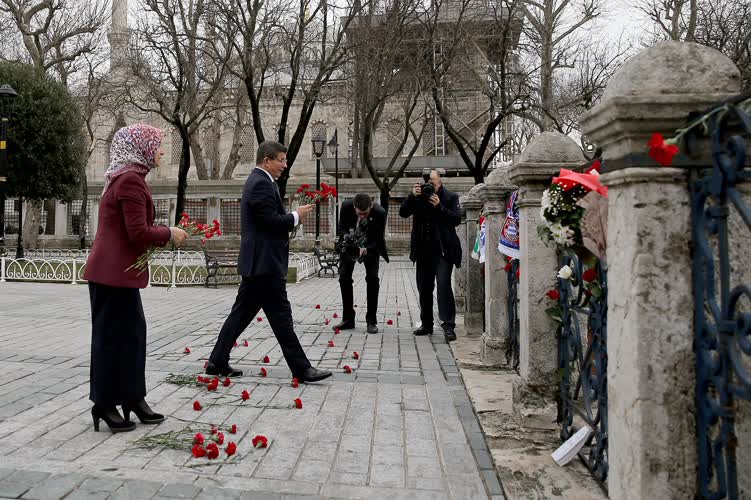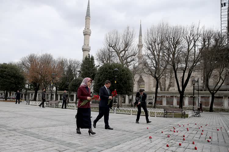 Davutoğlu saldırının gerçekleştiği yere karanfil bıraktı Başbakan Ahmet Davutoğlu, eşi Sare Davutoğlu ile birlikte Sultanahmet Meydanı’nda terör saldırısının yapıldığı noktaya karanfil bıraktı. 115 215 315 415 515 615 715 815 915 1015 1115 1215 1315 1415 1515