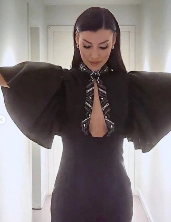 - Siyah göğüs dekolteli bir elbise giyen ünlü oyuncu dekolteli pozlarını peş peşe paylaşarak takipçilerinin beğenisine sundu.