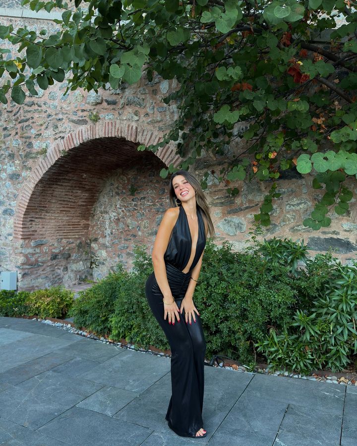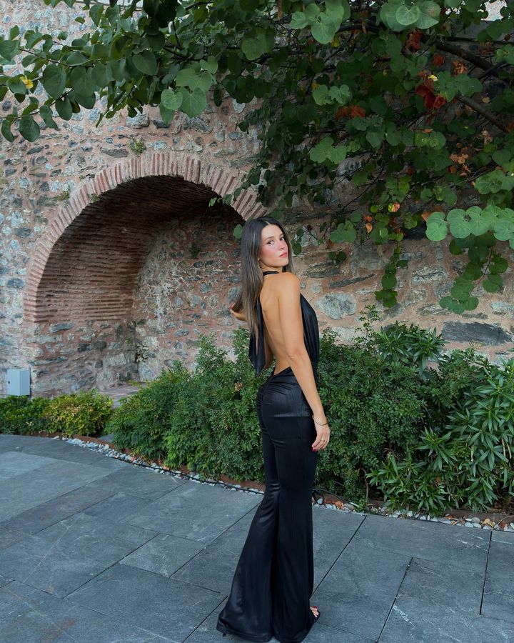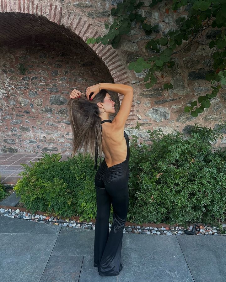 - Siyah derin göğüs ve sırt dekolteli tulumuyla paylaşım yaptı.