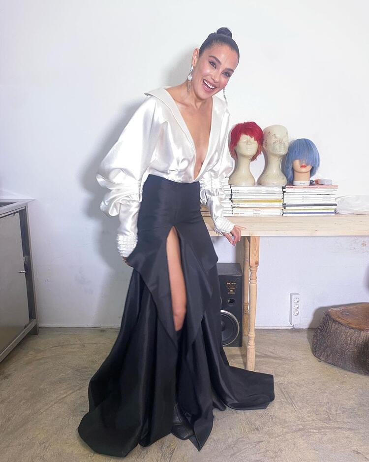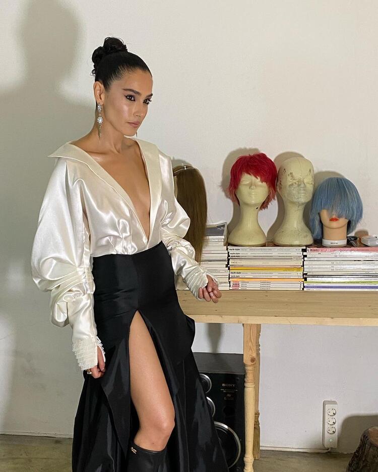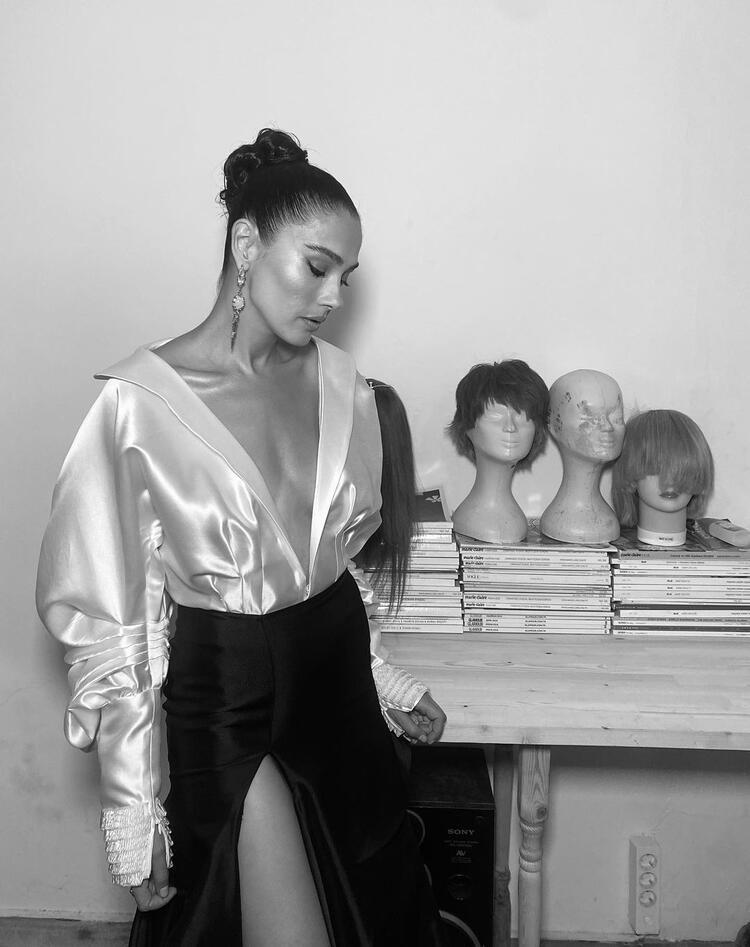 - Dizilerde hep ‘mazlum’ rollerle aşina olduğumuz başarılı oyuncu, gecede adeta şov yaptı. Göğüs dekolteli beyaz gömleği ve siyah kabarık yırtmaçlı elbisesiyle zarif bir görüntü çizdi.