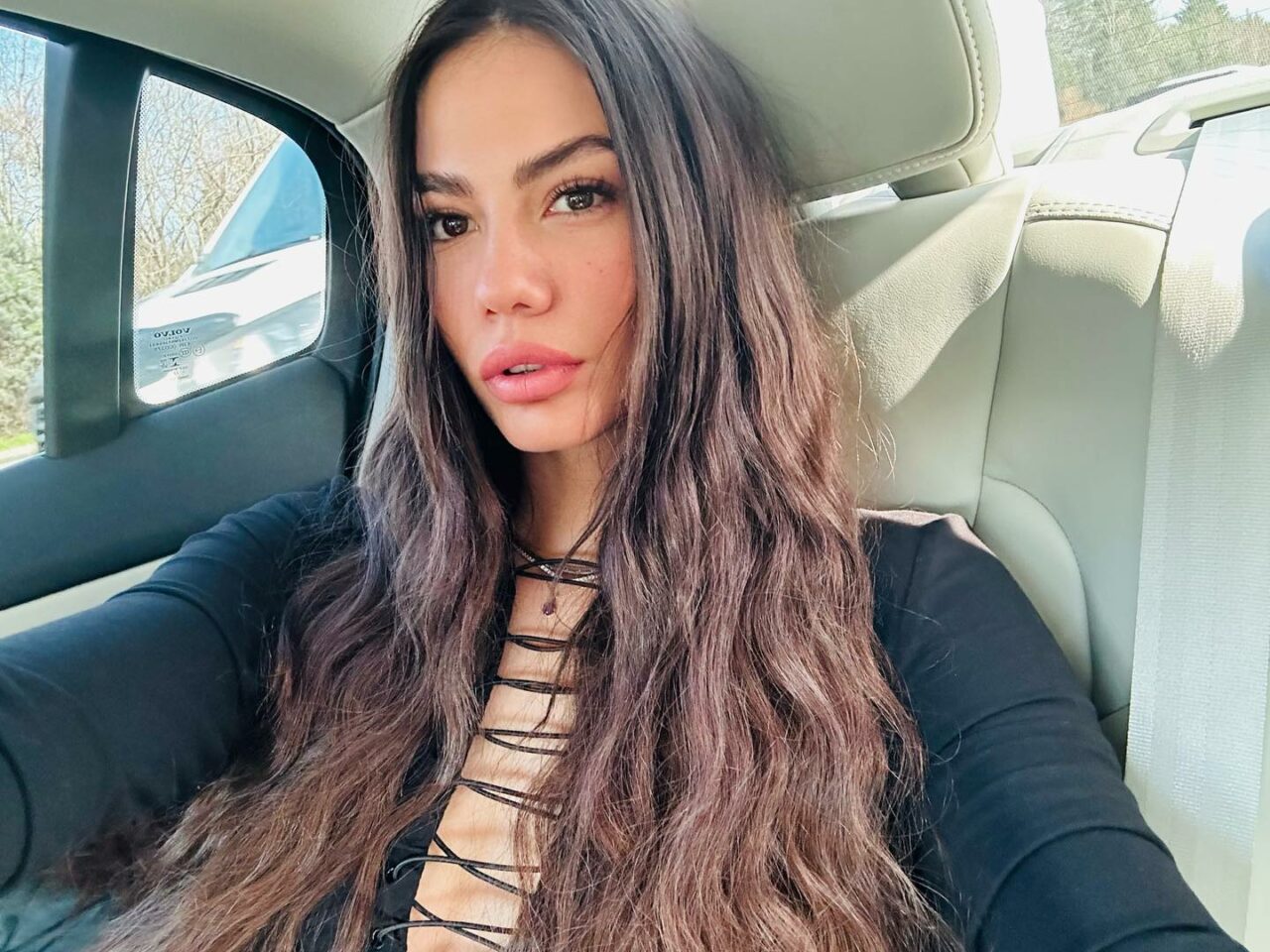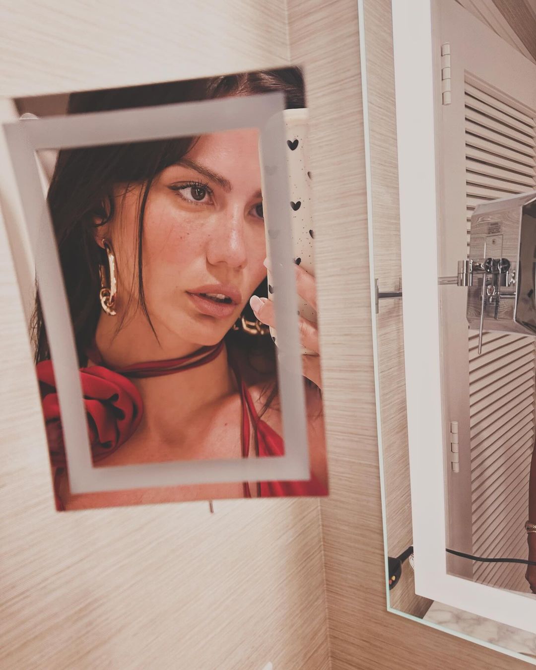 - İddialı gönderilerini peş peşe yayınlayan Özdemir, kırmızı derin dekolteli kıyafeti ile büyüledi.
