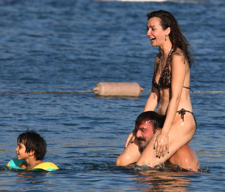 - Sevgilisinin yakın bir arkadaşının çocuğuyla suda şakalaştığını fark eden Hamza’nın kendisini omuzlarına almasından hayli memnun olan Akalay, kahkaha attı.