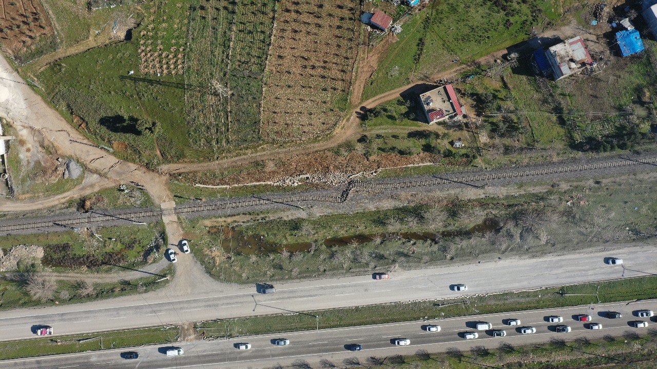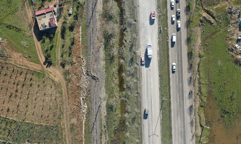 Kahramanmaraş’ın Türkoğlu ilçesindeki Şekeroba Mahallesinden geçen tren hattında hasar oluştu. deprem sebebiyle tren hattının yön değiştirmesi dikkati çekti.
