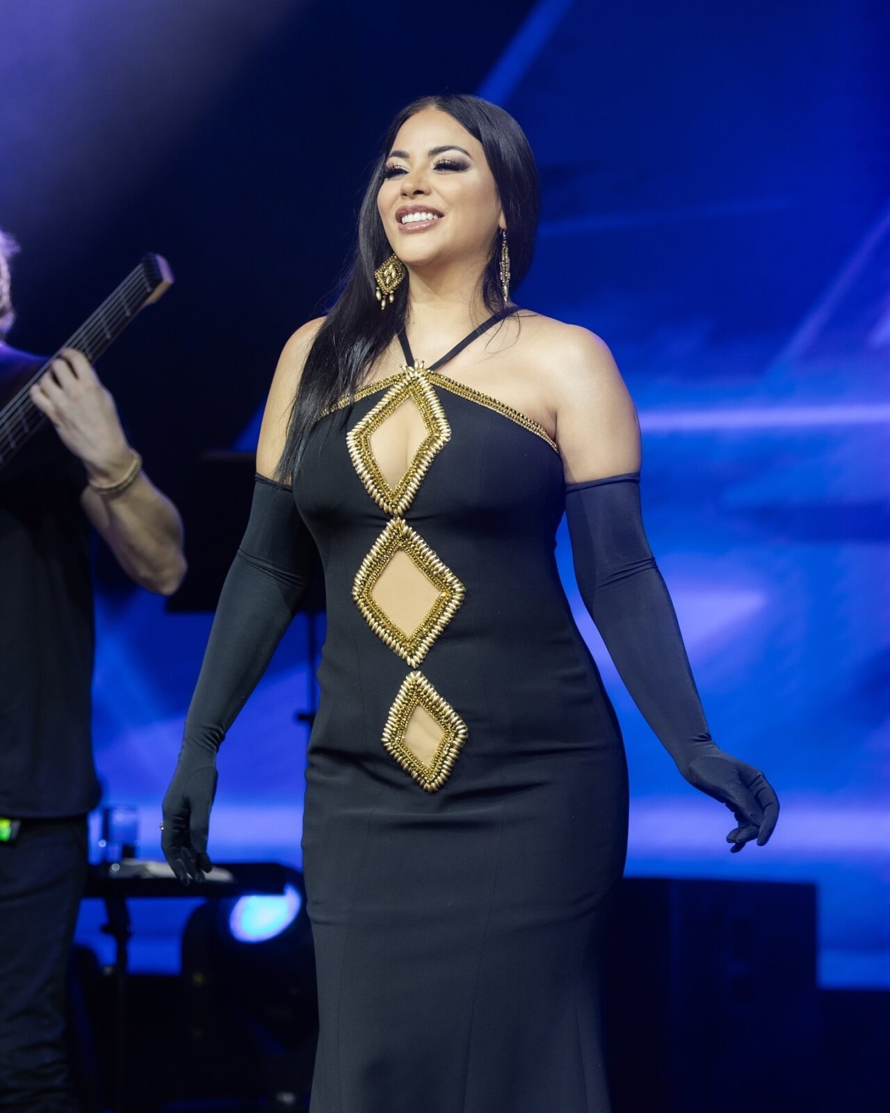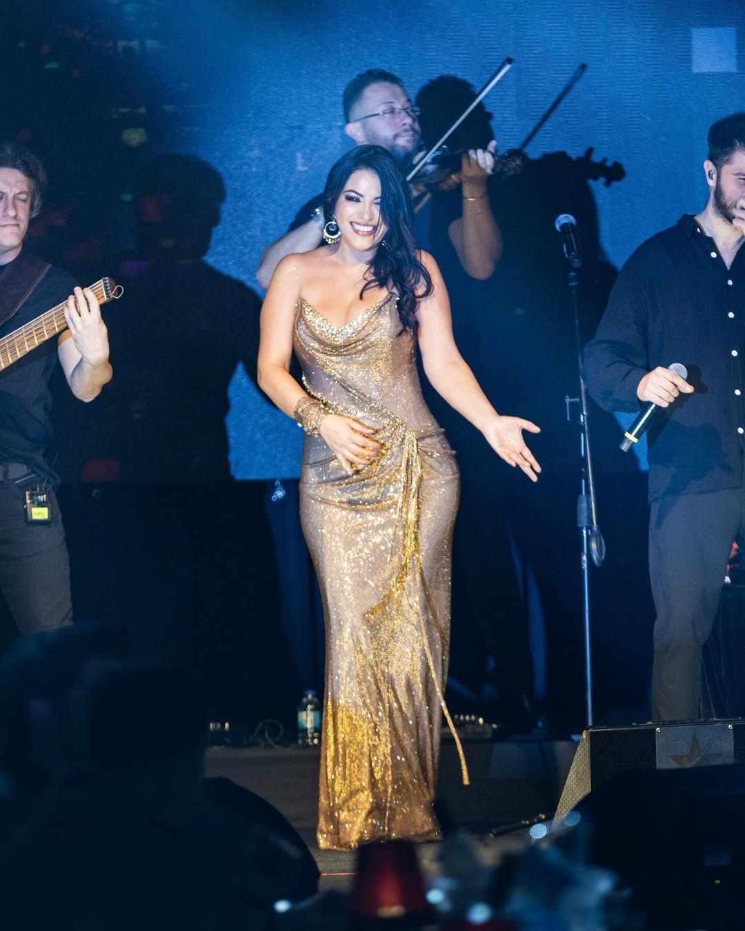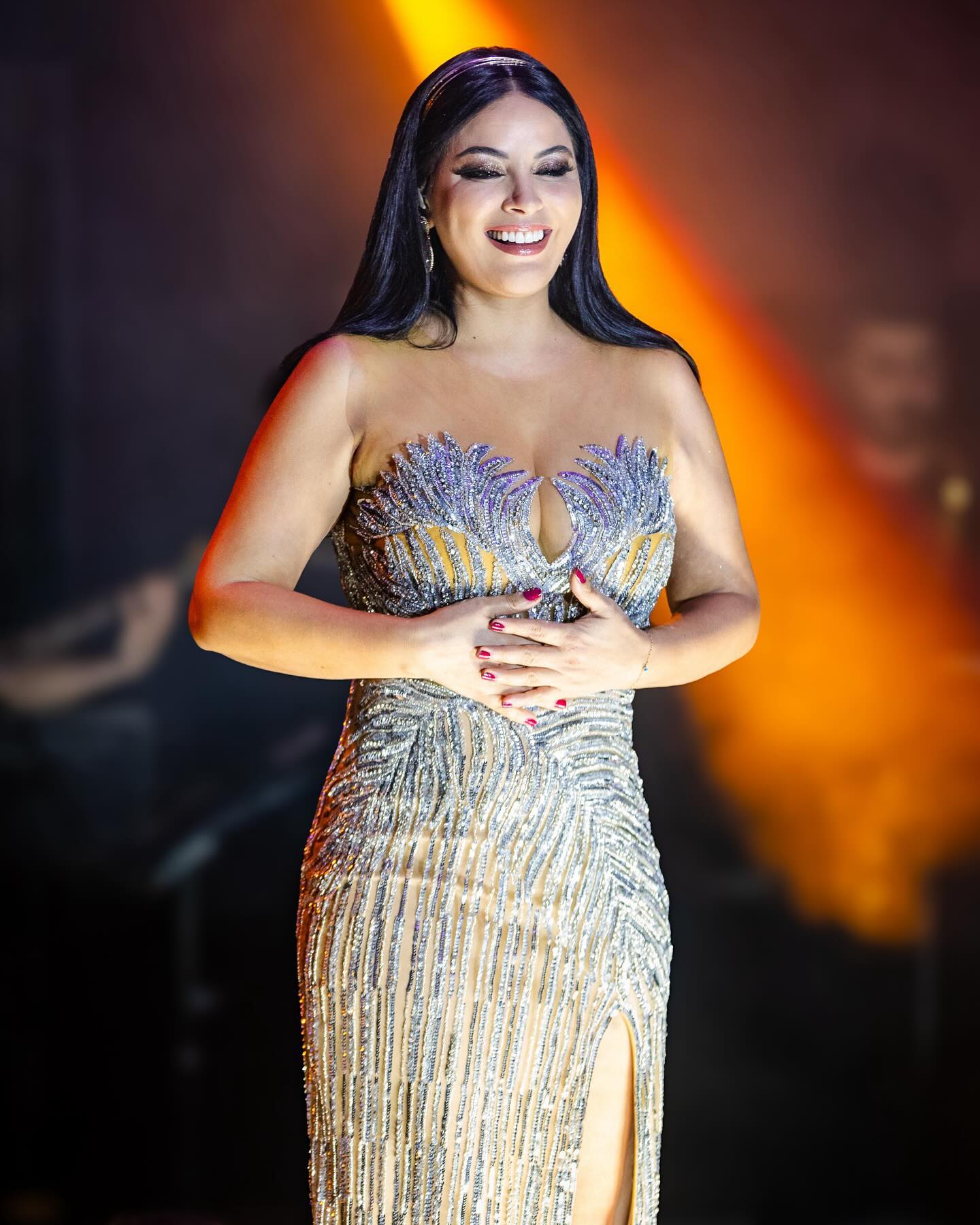 - Sahne için seçtiği derin dekolteli elbisesi, hem hayranlarının hem de sosyal medya kullanıcılarının dikkatini çekti.