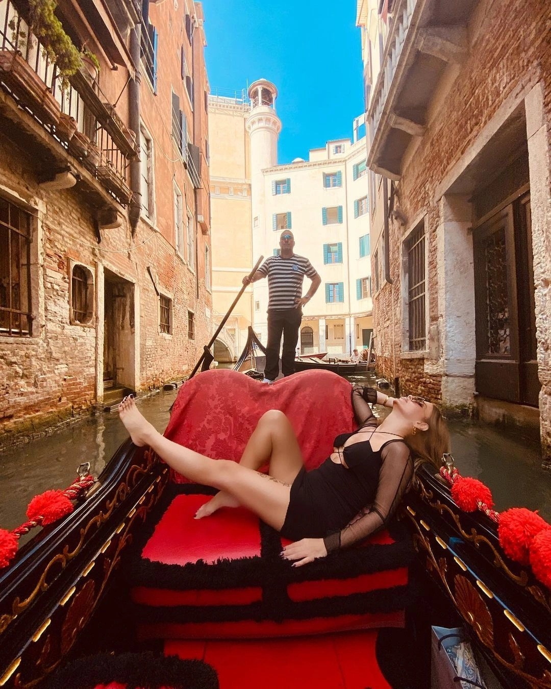 - Simge Sağın Venedik’te mini elbisesiyle poz verdi.