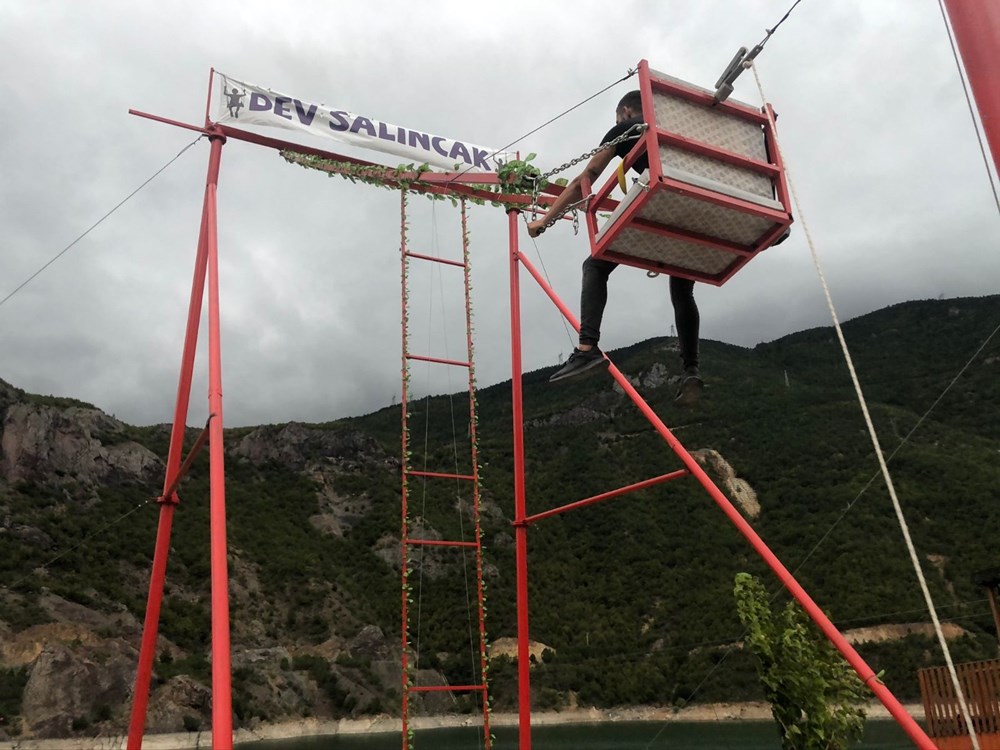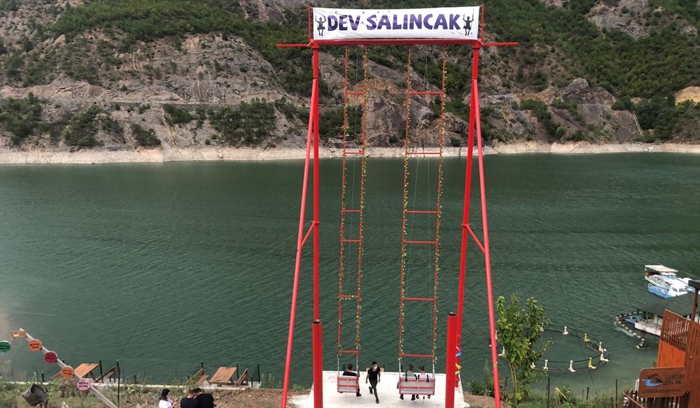 - Artvin – Borçka Karayolu’nun 10’uncu kilometresinde, Borçka Baraj Gölü kenarında bulunan Marina Tatil Köyü Artvin Sofrası Tesisi bünyesinde dev salıncak kuruldu. 18 Metre yüksekliğinde bulunan salıncakta sallanan vatandaşlar baraj gölüne düşüyormuş hissine kapılırken izleyen vatandaşlara da heyecanlı dakikalar yaşatıyor.