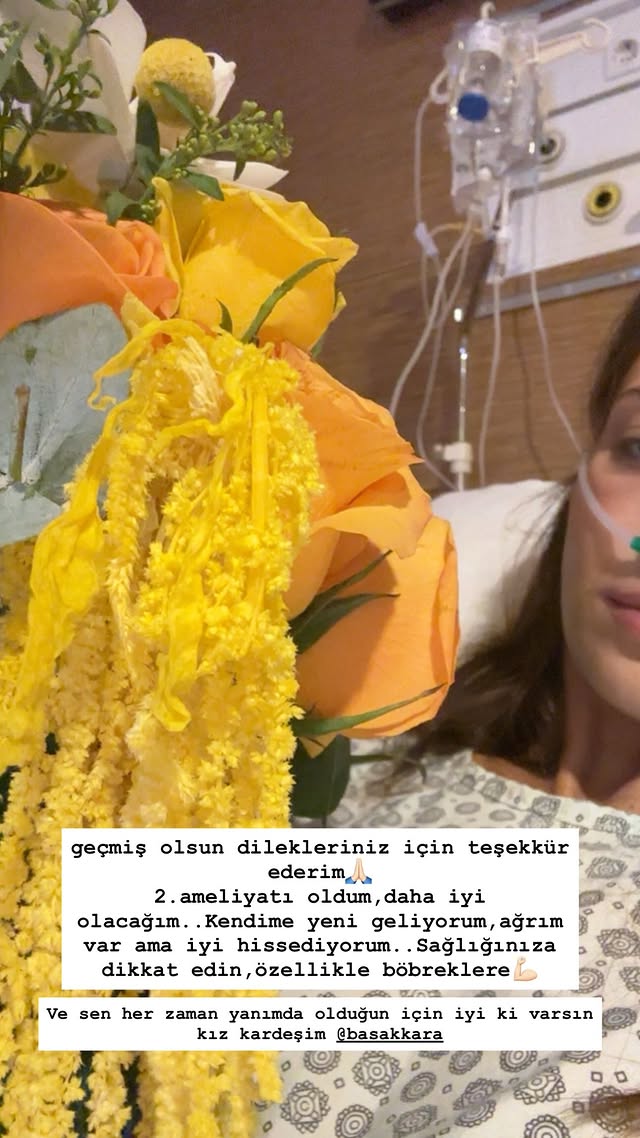 - Paylaşımında: “Geçmiş olsun dilekleriniz için teşekkür ederim. 2.ameliyatı oldum, daha iyi olacağım… Kendime yeni geliyorum, ağrım var ama iyi hissediyorum. Sağlığınıza dikkat edin, özellikle böbreklere” ifadelerini kullandı.