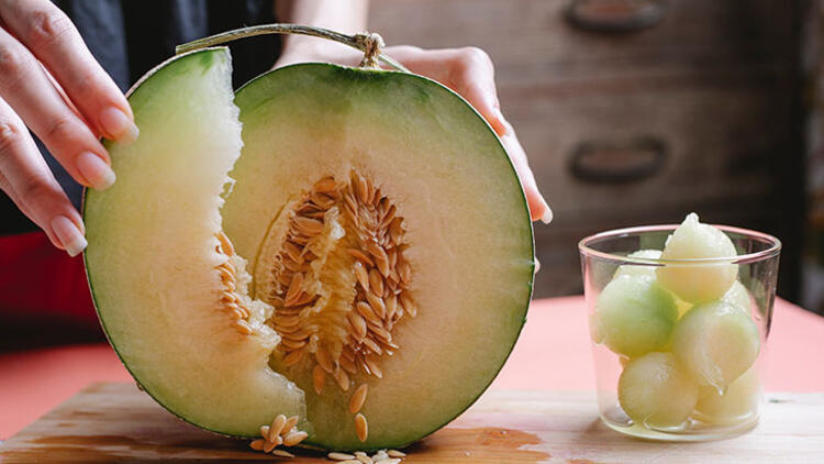 - Vücudun su ihtiyacını karşılar: Kavun meyvesi, yüzde 90 oranında su içermesinin yanı sıra, sodyumun zararlı etkilerine karşı koymak ve vücuttaki sıvı dengesini korumak için gerekli bir elektrolit olan potasyum bakımından da zengindir. Böylelikle, vücudu hücresel düzeyde aynı anda nemlendirebilen nihai bir susuzluk gidericidir.