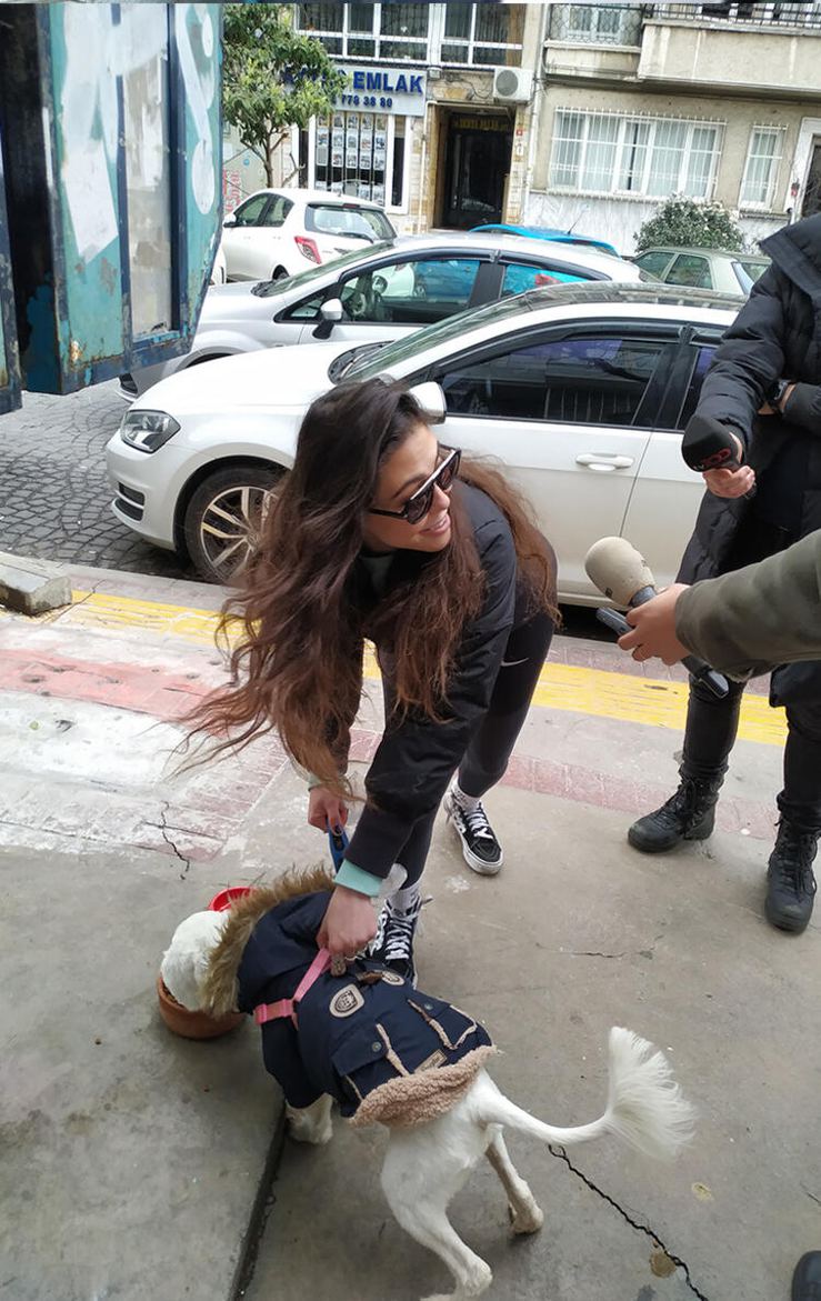 - Köpeğini mama kaplarından uzak tutmaya çalışırken bir hayli zorlanan oyuncu, sözün geçtiğimiz günlerde genç sevgilisi Onur Bay’la tekrar barışmasına gelince utangaç tavırlar sergiledi.