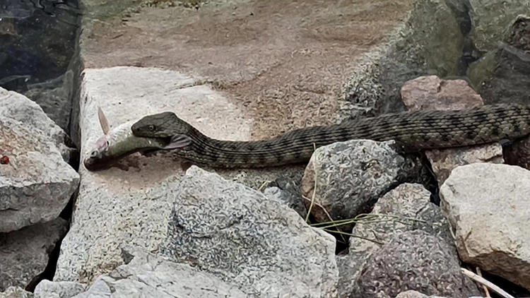 - “Yılanlar baharın gelmesiyle kış uykusundan uyanır. Aç olan yılanlar uyandıklarında suya yakın bölgelere giderek balık, kurbağa gibi canlıları avlar. Keban Baraj Gölü’nde 28-30 çeşit balık türü varken halk arasında ‘kral balığı’ olarak bilinen balıkla beslendiğini görüyoruz. Suda yakaladığı balığa zehrini aktararak kısmi felce uğratıyor. Yılanların mide ve karın kasları çok gelişmiştir. Vücudundan daha büyük bir canlıyı rahatlıkla yutabiliyor. Zehirli yılanların kuyrukları küt, ince boyunlu ve kafa yapısı üçgen şekildedir.”
