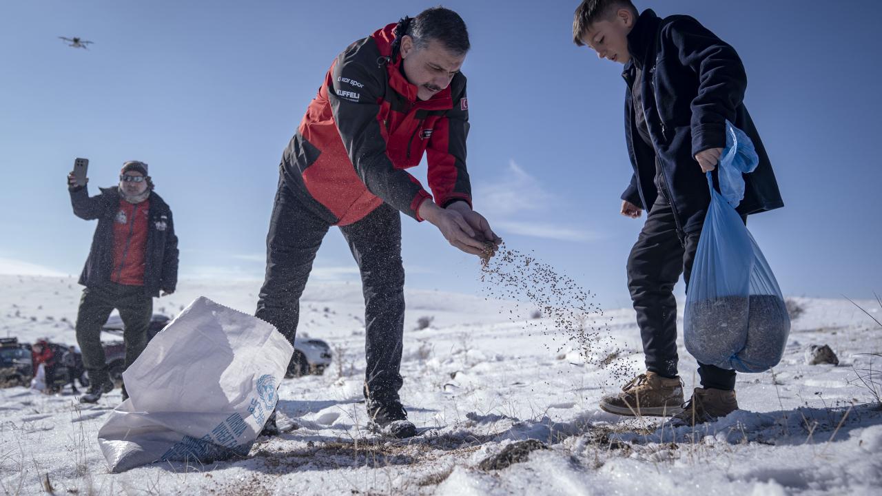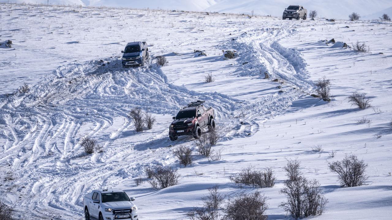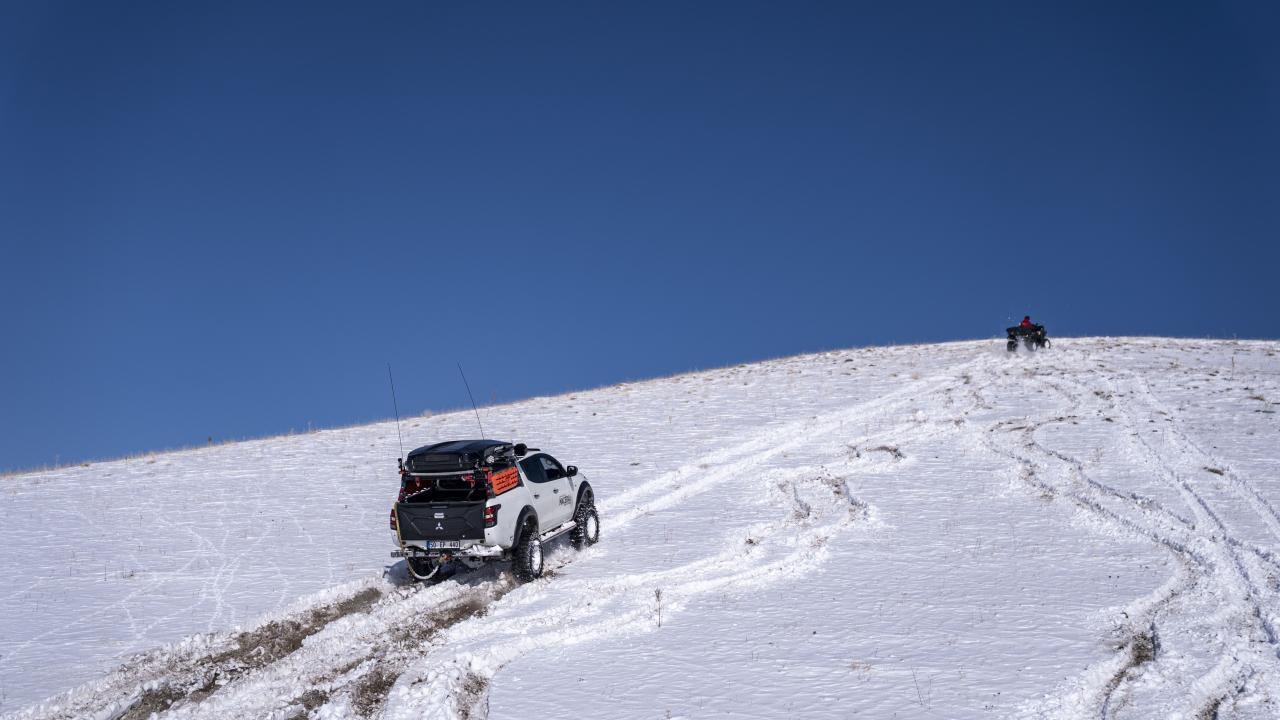 - Zaman zaman kara saplanan 4×4 araçlarıyla karlı dağları aşan macera tutkunları ile Vali Çiftçi, doğada zor şartlarda yaşam mücadelesi veren hayvanlar için yanlarında getirdikleri yemleri toprağa bıraktı.
