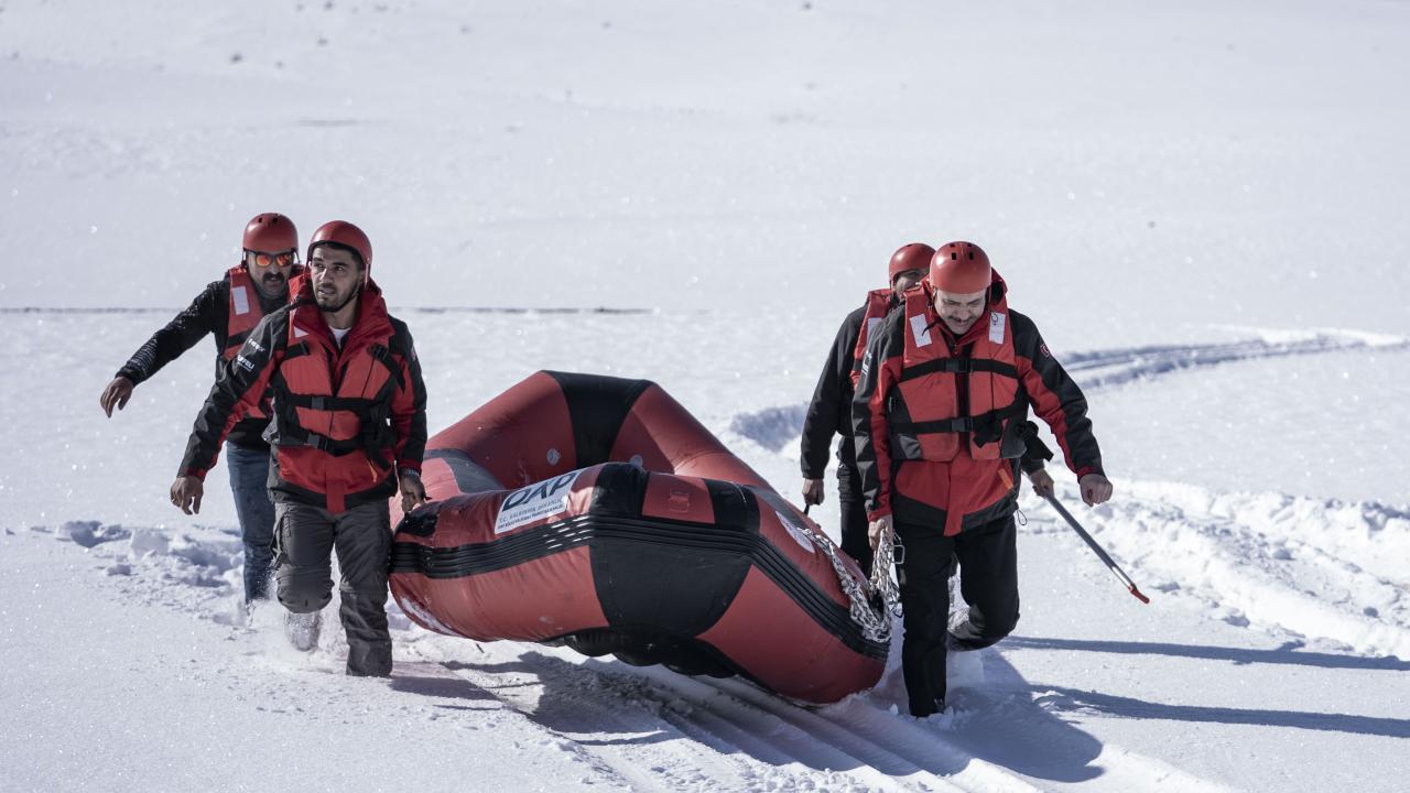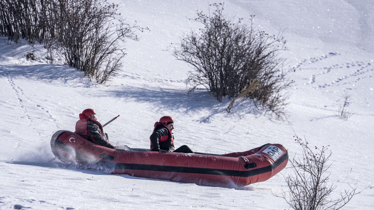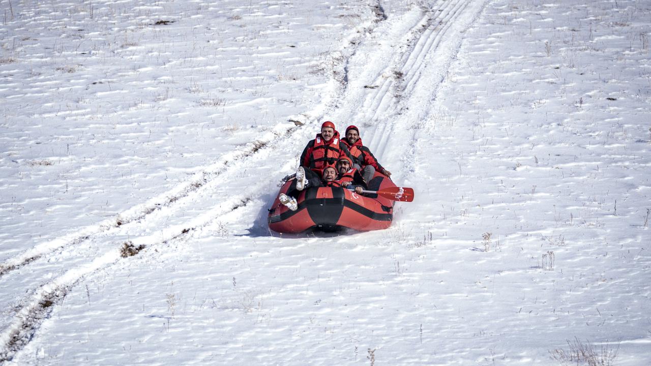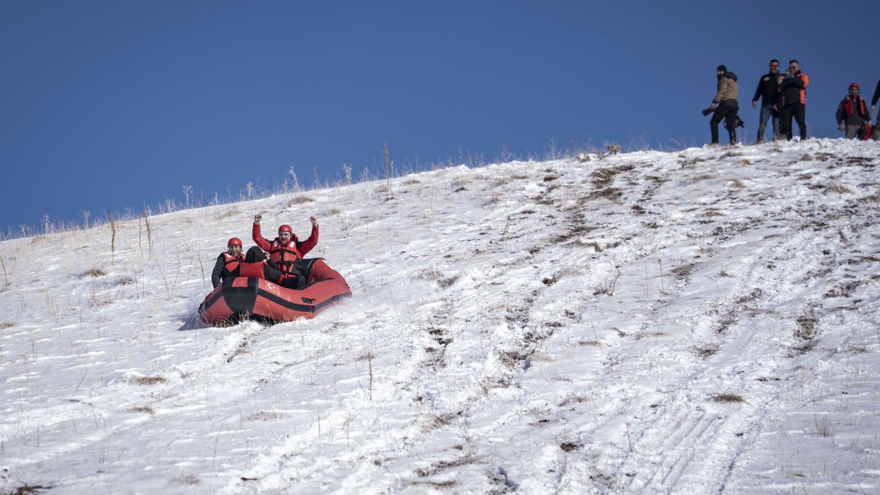 - Göletin üzerinde kar raftingi yapan gruba çeşitli ikramlarda bulunuldu.