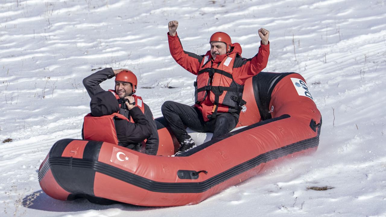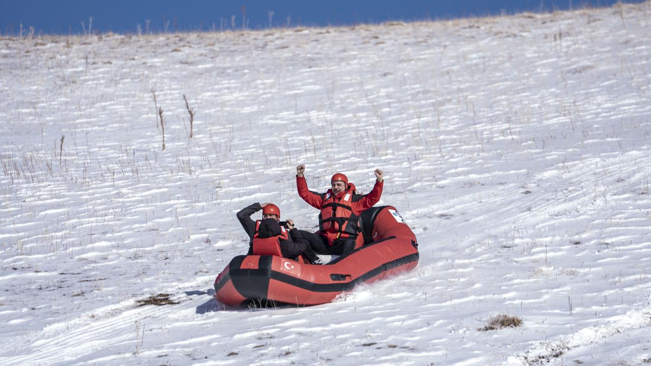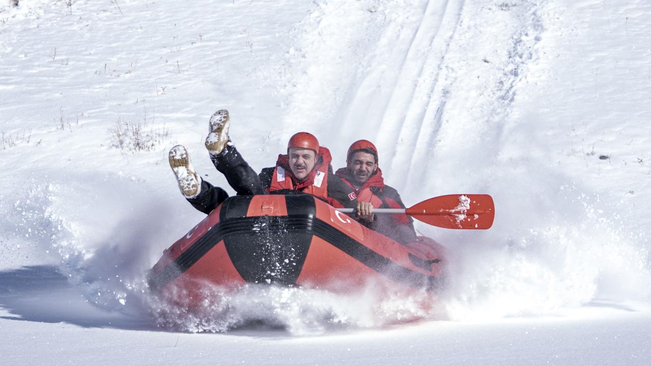 - Ardından yüzeyi tamamen donmuş Söğütlü Göleti`ne geçen katılımcılar, burada Vali Çiftçi`nin de katıldığı kar raftingi yapıp eğlendi.