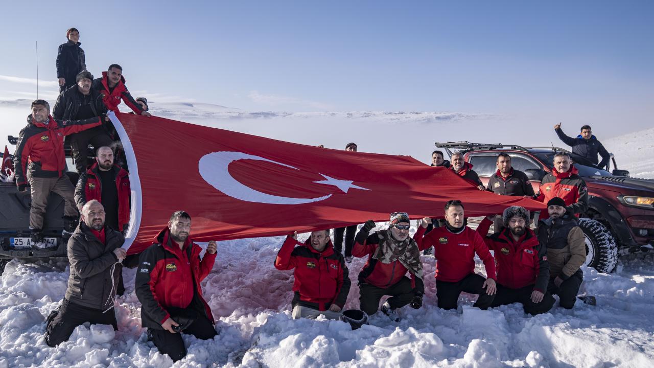- Etkinliğin sonunda katılımcılar, donmuş gölet üzerinde Türk bayrağı açtı.