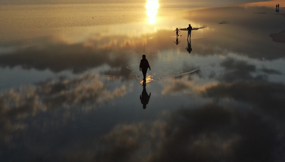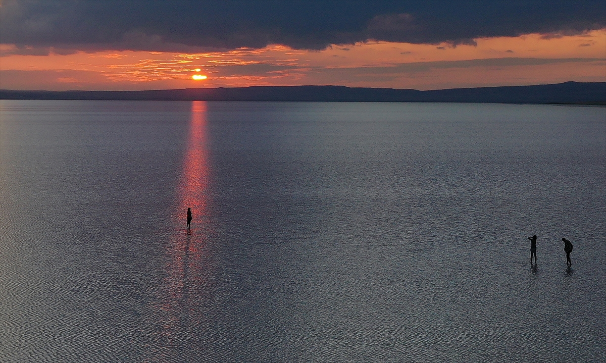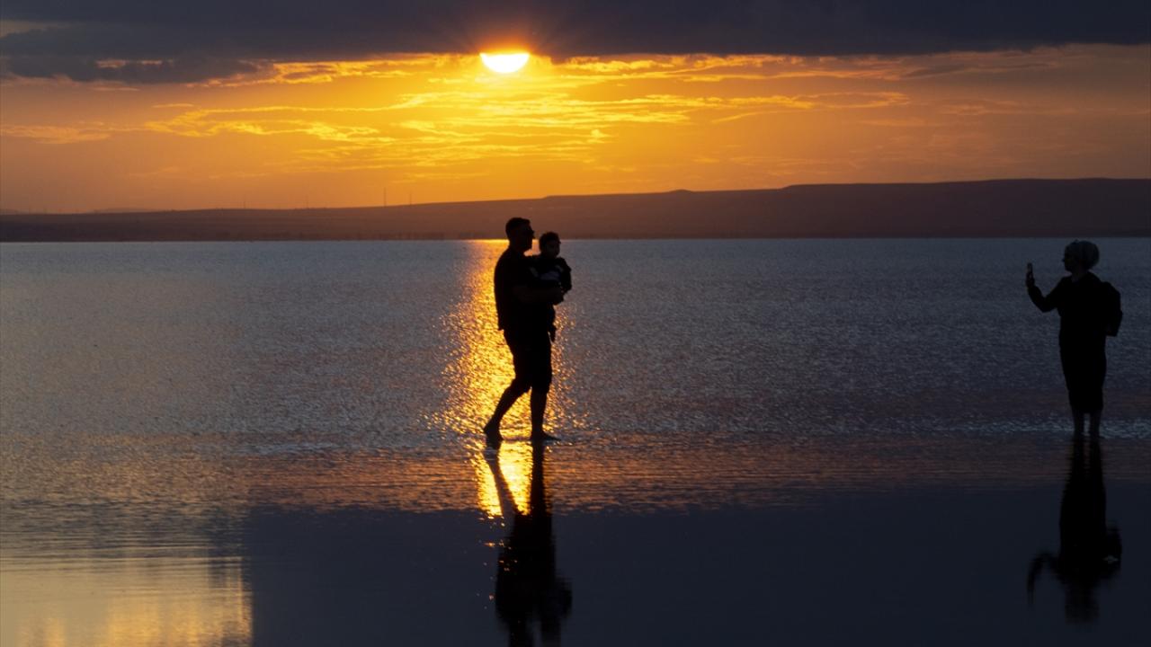 - UNESCO Dünya Mirası Geçici Listesi`nde bulunan gölde, gün batımı güzel görüntüler oluşturdu.(AA)