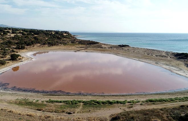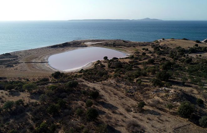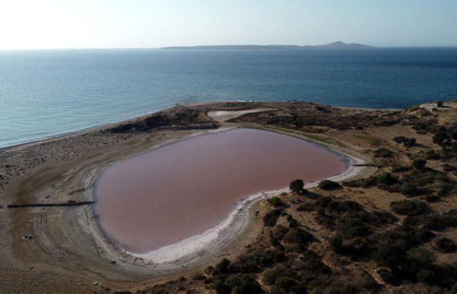 - Dış liman ile bağlantısı zamanla ortadan kalkan antik kentin iç limanı bir göle dönüştü. Zamanla da doğa koşullarına bağlı olarak suyun çekilmesi ile kalp şeklini aldı. İçerisindeki tuzlu suyun yılın belli dönemlerinde pembe renge bürünmesiyle 2 bin yıllık antik liman, bugün dünya üzerinde bilinen ve pembe renge sahip 8 gölden birisi haline geldi.
