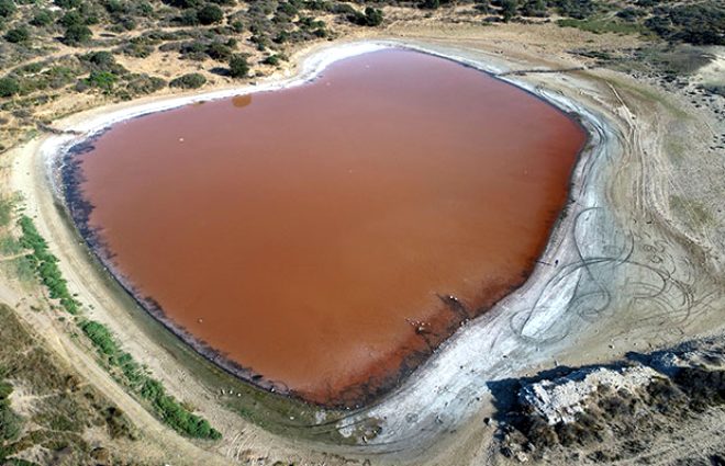 - Kalp şeklindeki gölün yazdan sonbahara ve kıştan ilkbahara girildiği dönemlerde pembe rengi aldığını anlatan Öztepe, “Özellikle ekim ve mart ayına doğru renginin değiştiğini görebiliyoruz.”