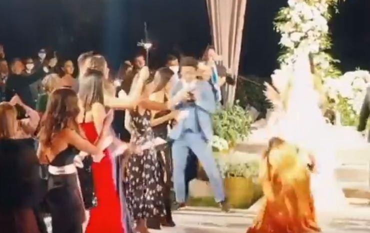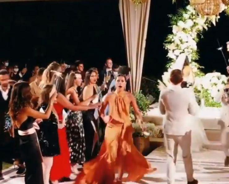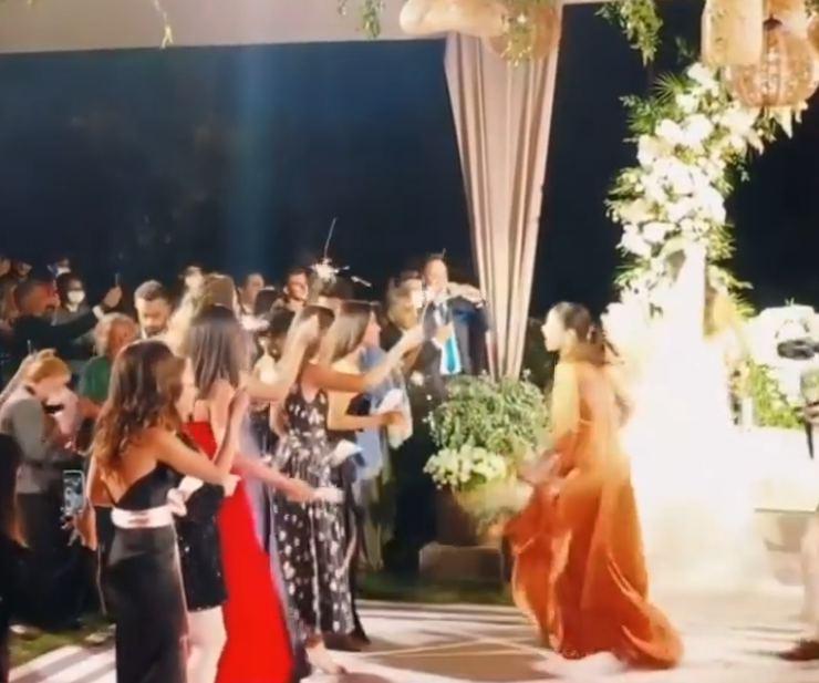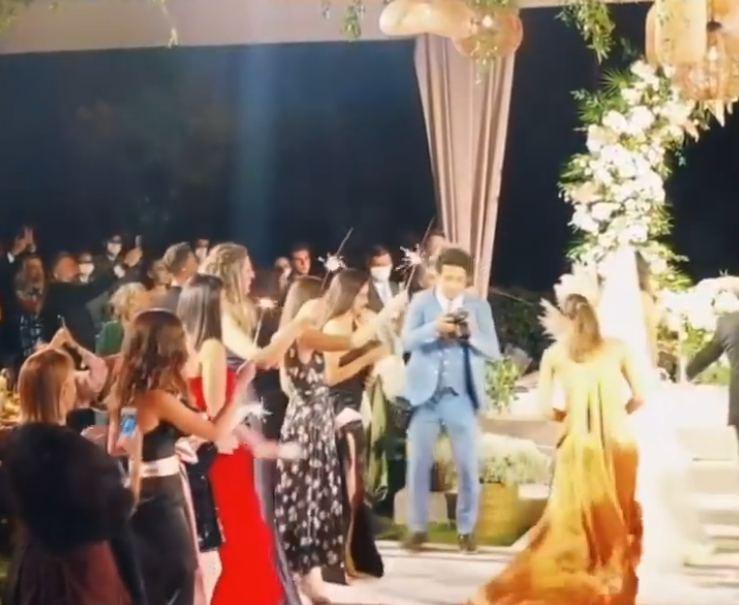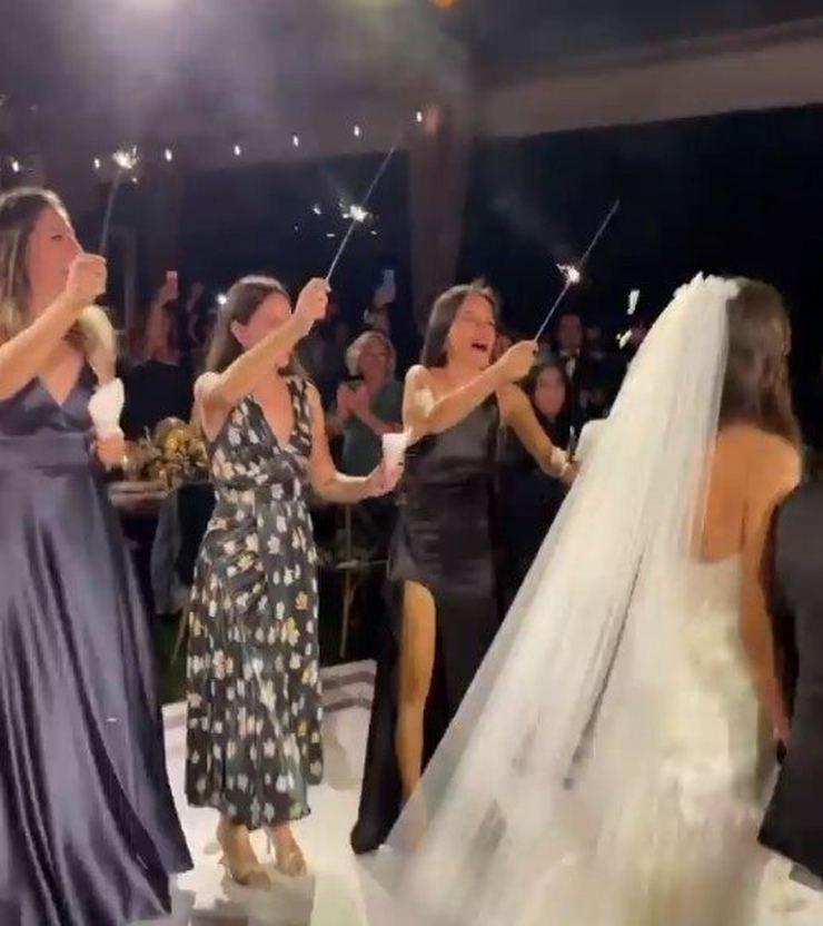 - Düğün alanına giren ünlü çifti, arkadaşları ellerinde maytaplarla karşıladı.