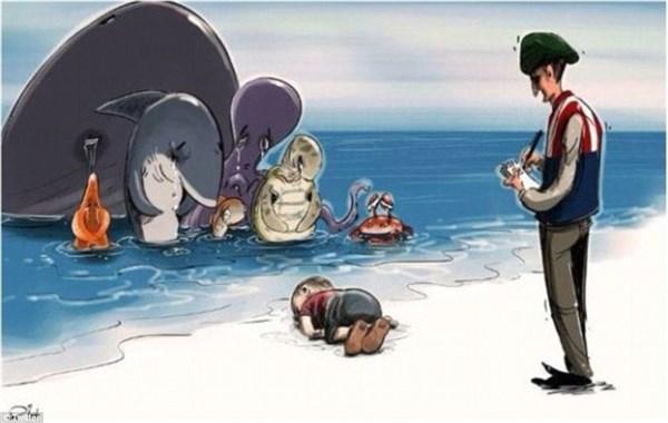 Cansız bedeni Bodrum kıyılarına vuran üç yaşındaki Suriyeli küçük mülteci Aylan Kurdi için tüm dünya ayağa kalkarken, sosyal medya minik Aylan’ın trajedisine işte bu yürek sızlatan resimlerle tepki verdi.