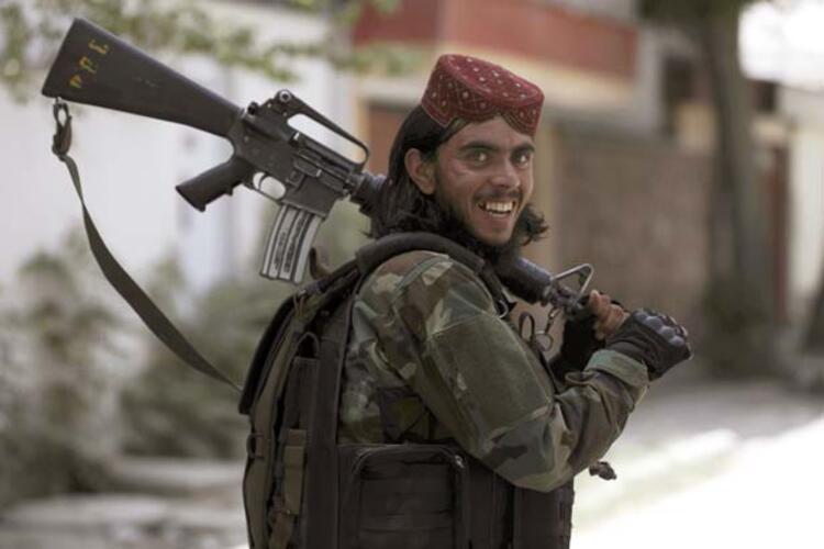 - Yeğeni Sirajuddin Hakkani’nin başkan olmak için adının geçtiği Hakkani, ABD ordusunda standart bir savaş silahı olan Amerikan yapımı bir M4 tüfeğiyle hava attı. Etrafı militanları durdurmak için Afgan ordusuna verilen ABD askeri teçhizatıyla donatılmış, benzer silahlar taşıyan güvenlik birlikleriyle çevriliydi.