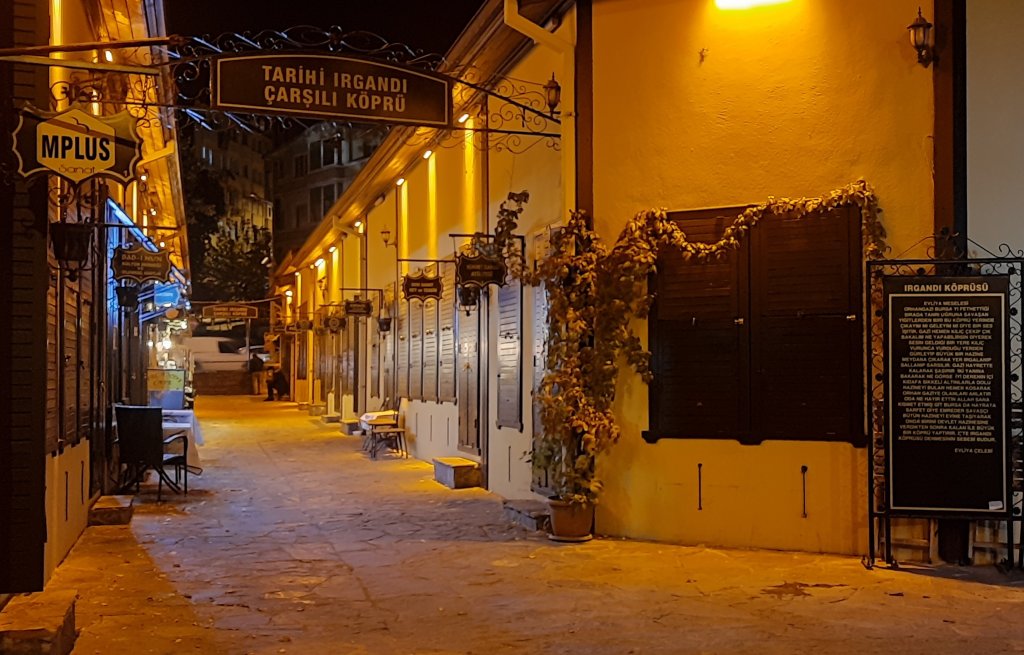 - Irgandı Köprüsü 19. yüzyılın ikinci yarısında ahşap dükkanların yan yana dizildiği üstü açık bir çarşı haline gelmiştir. 1922’de işgal kuvvetleri Bursa’yı terkederken köprüyü bombalayarak yıkmışlardır. 1949’da betonarme olarak çarşısız hali tekrar inşa edilen köprünün 2004 yılında rekonstrüksiyonu gerçekleştirilerek orjinal haline döndürülmüştür.(bursa.com.tr)