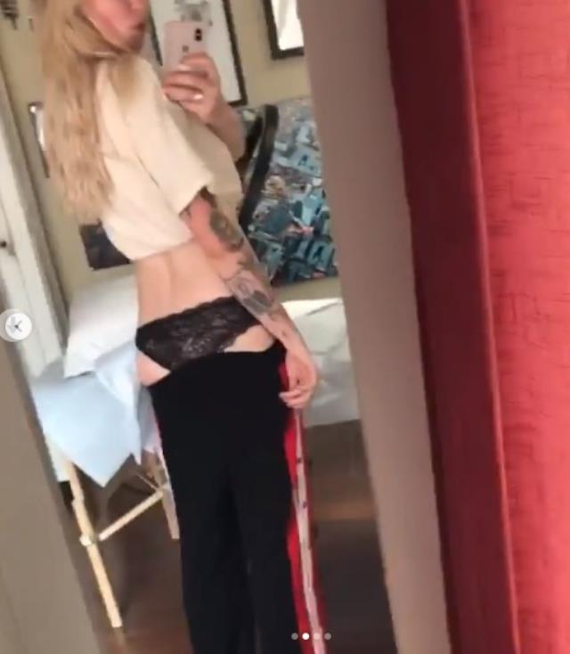 - Yeni yaptırdığı dövmeyi göstermek isteyen model, pijamasını aşağıya indirdi. Ünlü modelin o sırada siyah iç çamaşırı göründü.
