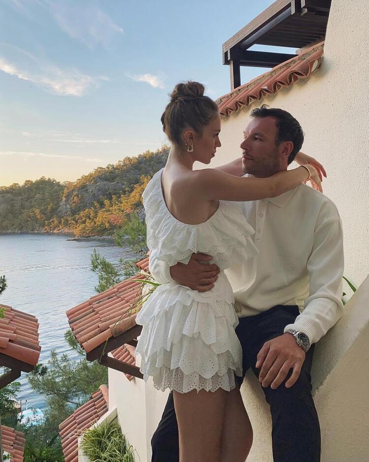 - Özaslan, “Görücü usulü tanıştık. Ortak bir arkadaşımız ‘Biri var, senden çok hoşlanıyor’ dedi. Beklentim sıfır olduğu için ilgilenmedim. ‘Ya çirkindir ya da salaktır’ dedim. Sonra bir akşam mesaj attı. Ertesi gün buluştuk ve sevgili olduk” demişti.