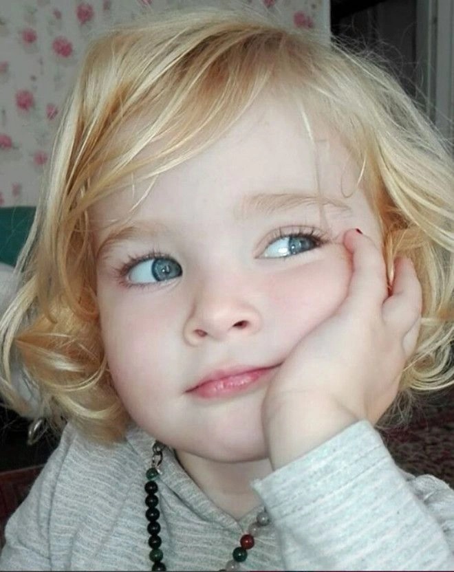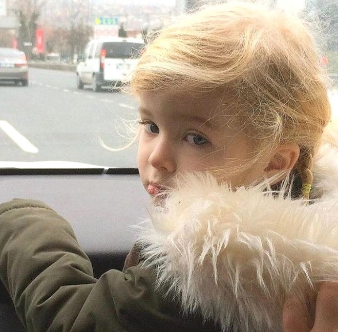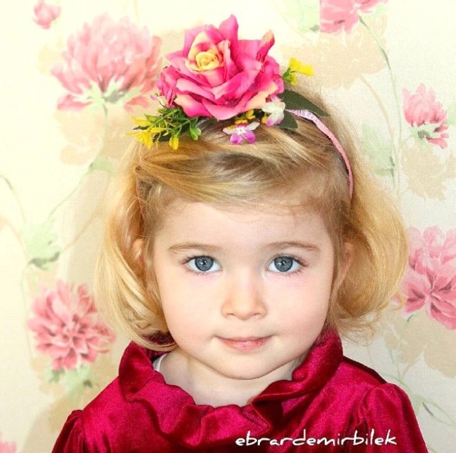 - Sarı saçları ve mavi gözleriyle adeta şirinlik abidesiydi.
