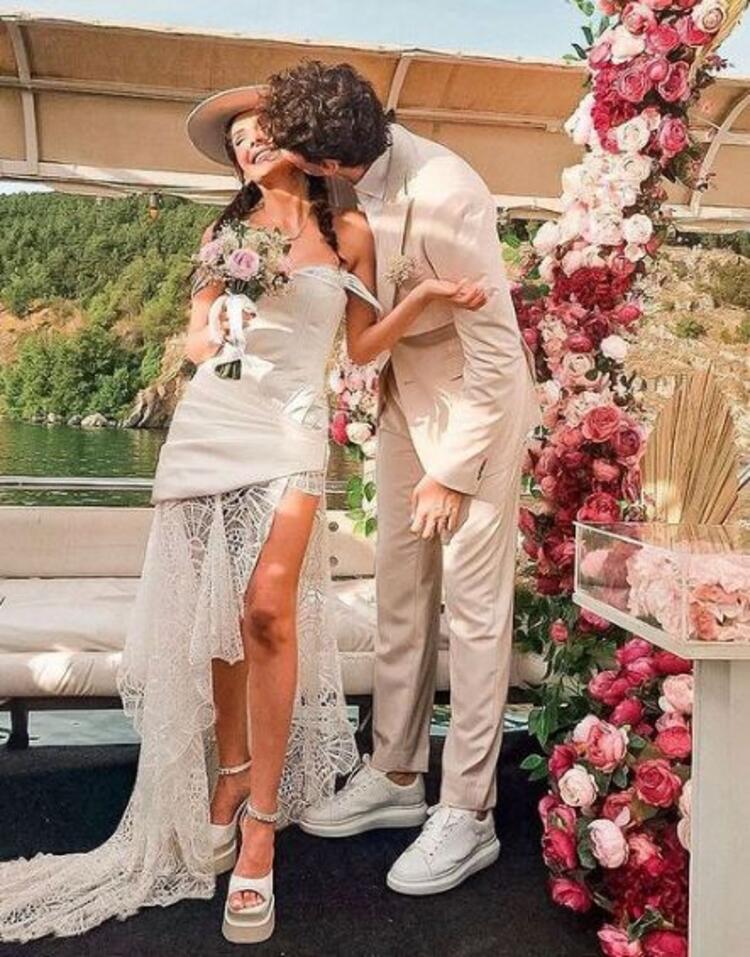 - Nikah, göl üzerinde bir teknede kıyılırken çift, davetlilerle birlikte Makedon müzikleri eşliğinde eğlendi. Şahin ve Osman, 7 Temmuz’da da Çeşme’de düğün yapacak.