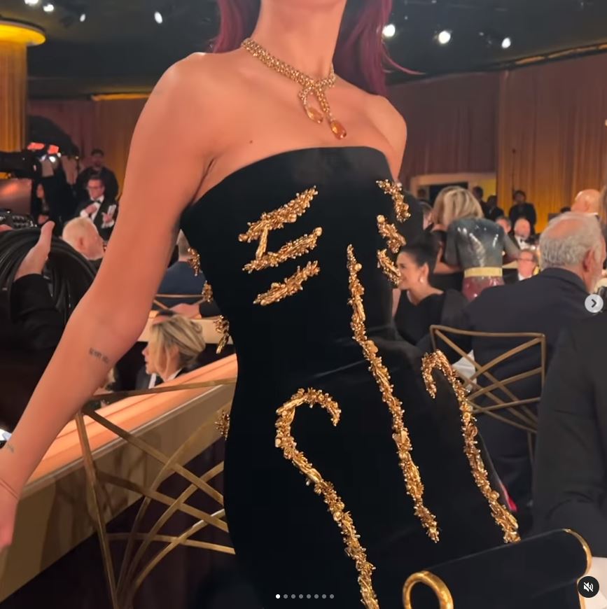 Elbisesi yüzünden zor anlar yaşadı! Giydiği kıyafet gündem oldu… 110 Dua Lipa, sosyal medyayı aktif kullanan isimlerden. 210 Altın Küre’ye dikkat çekici bir elbise ile katıldı. 310 Kıyafeti nedeniyle yaşadığı oturma problemiyle de gündem oldu. 410 510 610 710 810 910 1010