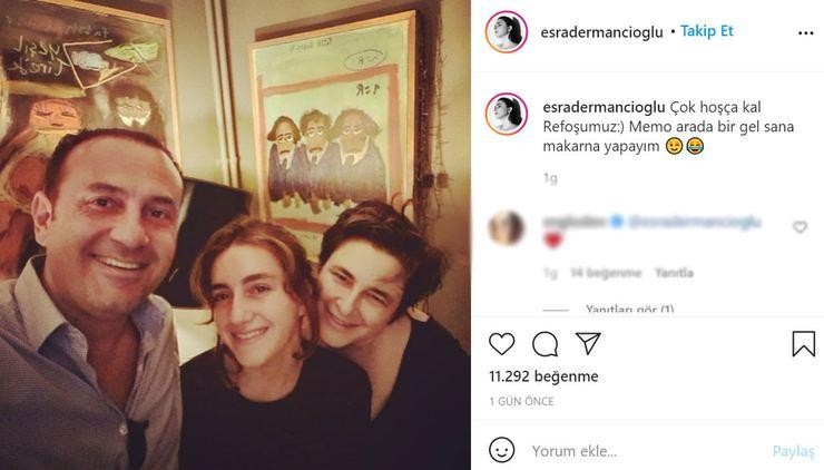- Esra Dermancıoğlu bu fotoğrafı, “Çok hoşça kal Refoşumuz 🙂 Memo arada bir gel sana makarna yapayım” notuyla paylaştı.