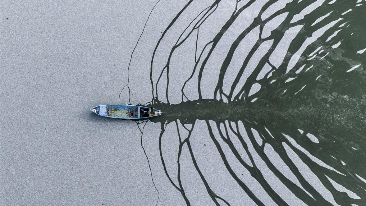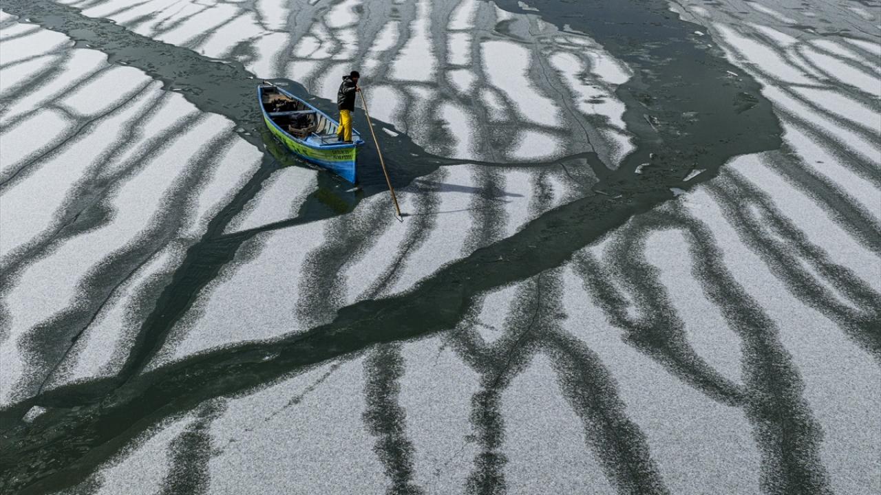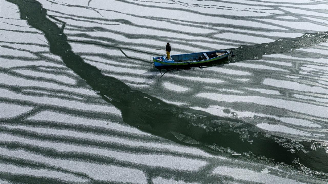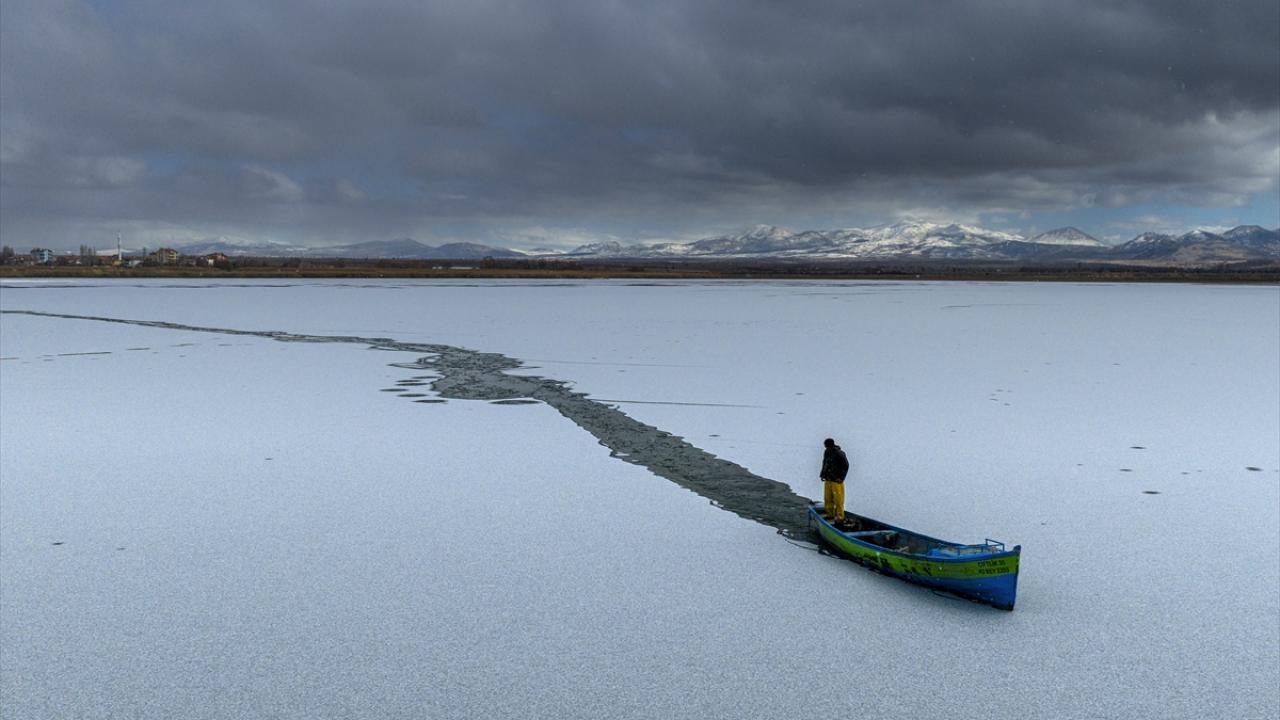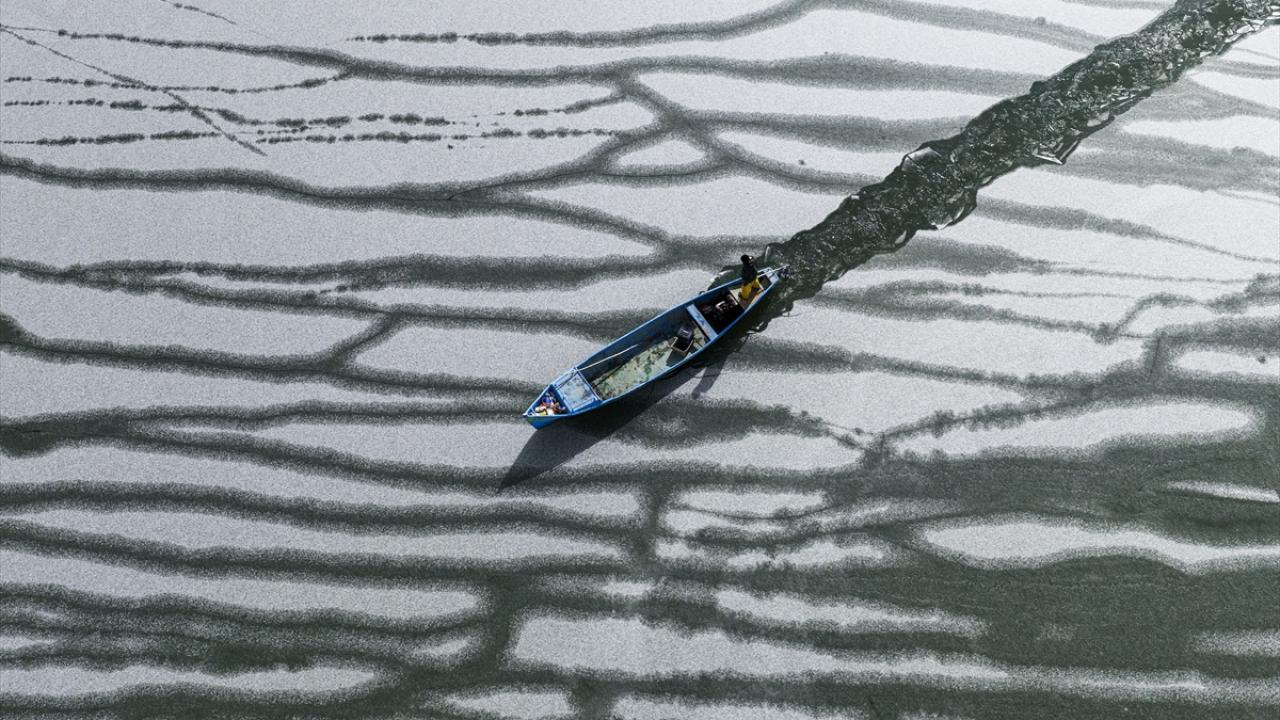 - Geçimlerini balıkçılıkla sağlayan göl balıkçıları, zorlu kış koşullarına rağmen avlanmayı sürdürebilmek için buz tutan göl yüzeyini kırarak tekneleriyle suya açıldı.